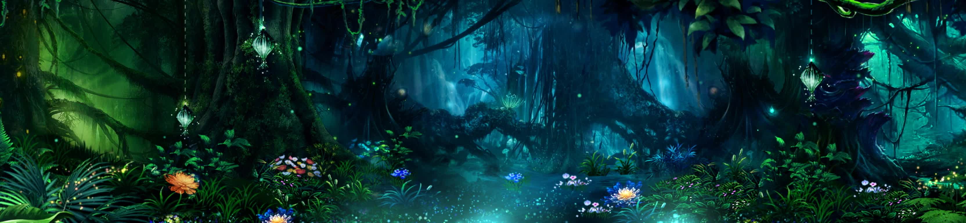 森林 绿叶 鲜花 粒子 绿藤 植物 花海 鲜花绽放 星空 蓝色 梦幻 景区 风景 宴会厅 开场 全息投影素材