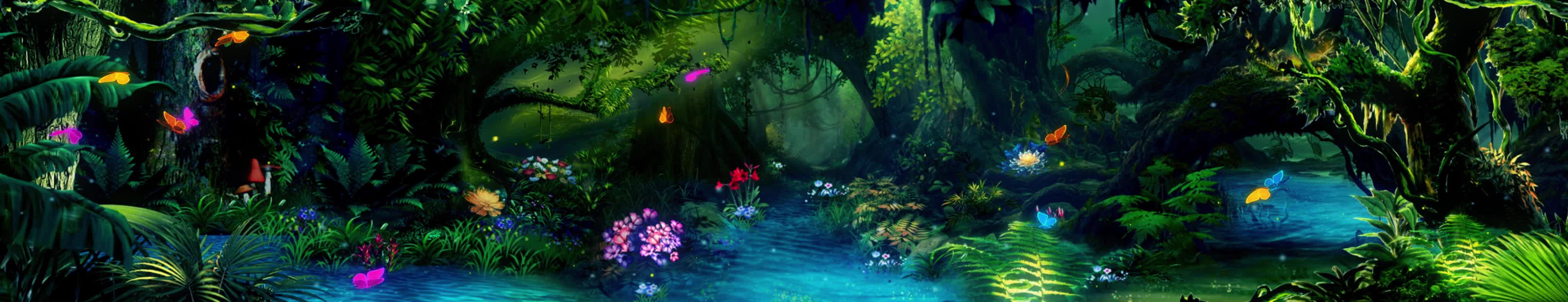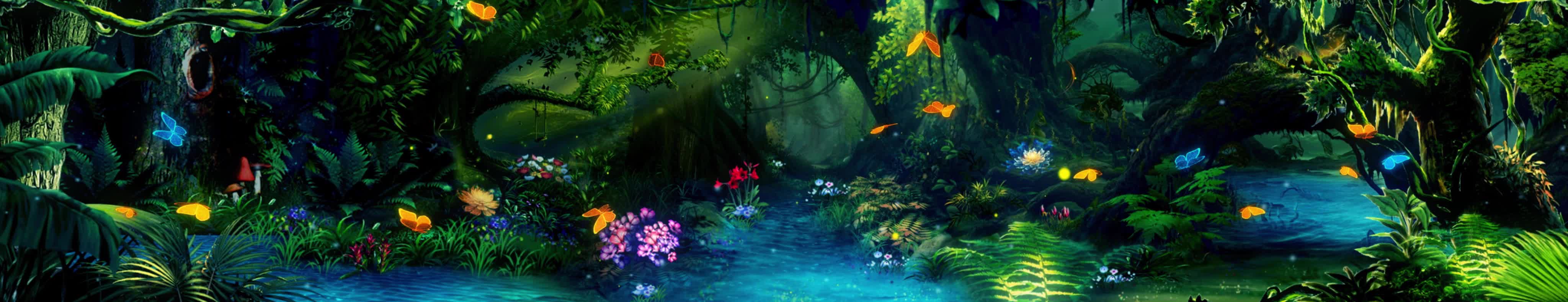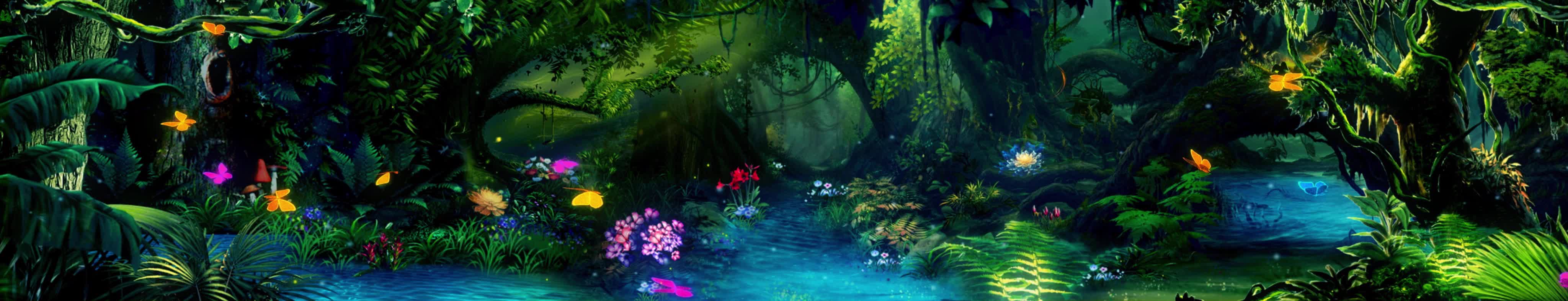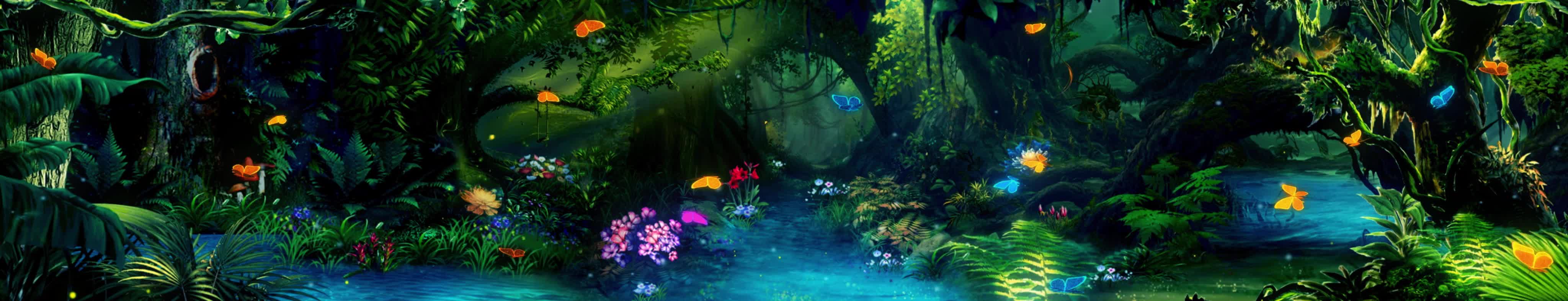 森林 丛林 树 植物 大自然 花 蝴蝶 小溪 流水 粒子 荧光 梦幻 童真 风景 宴会厅 全息投影素材