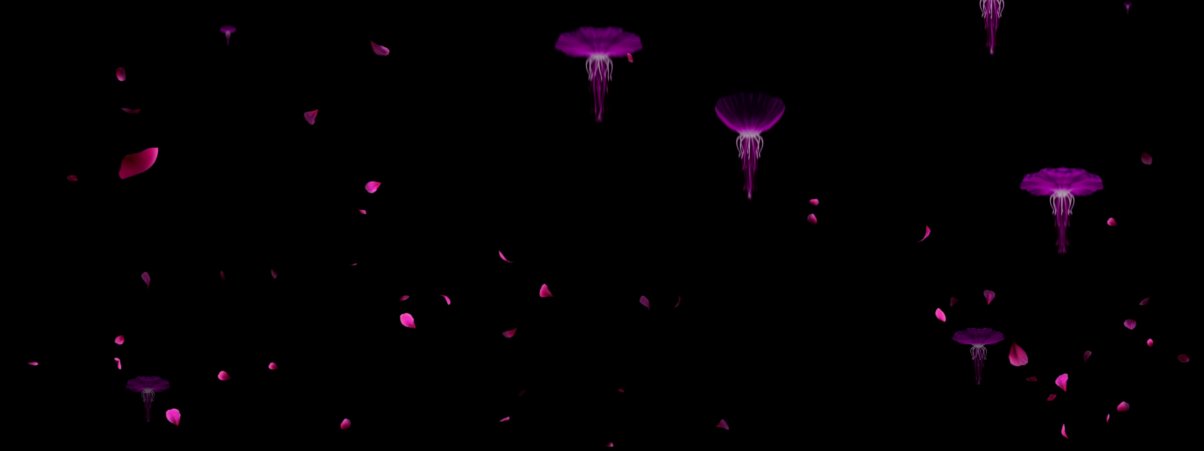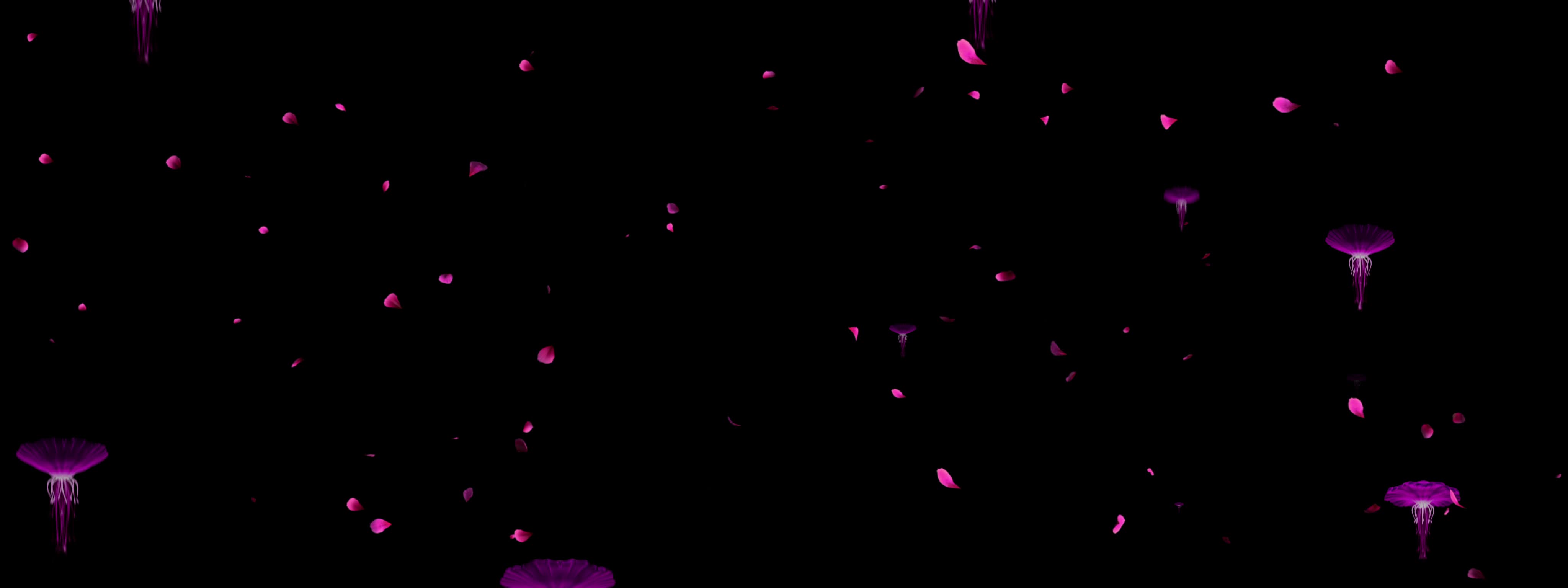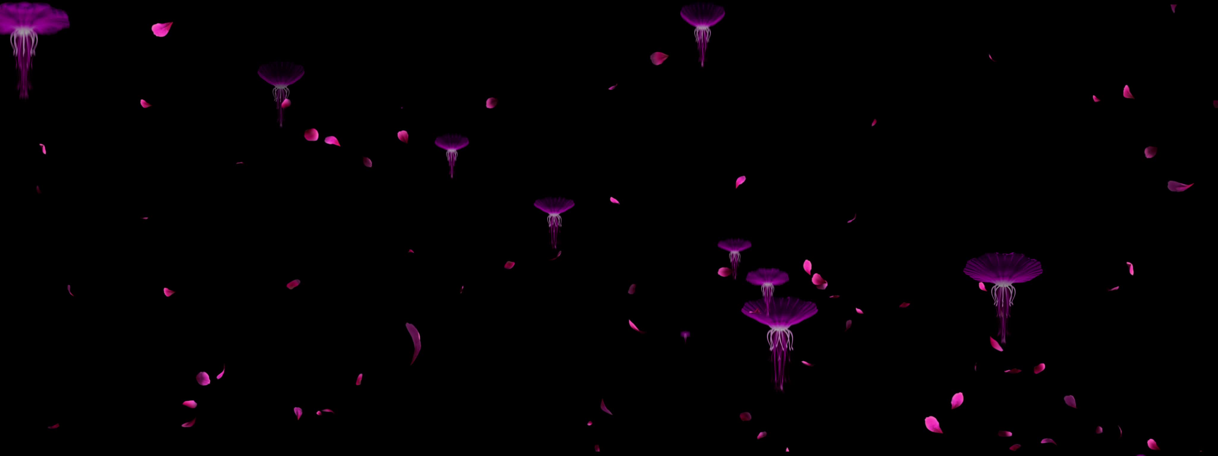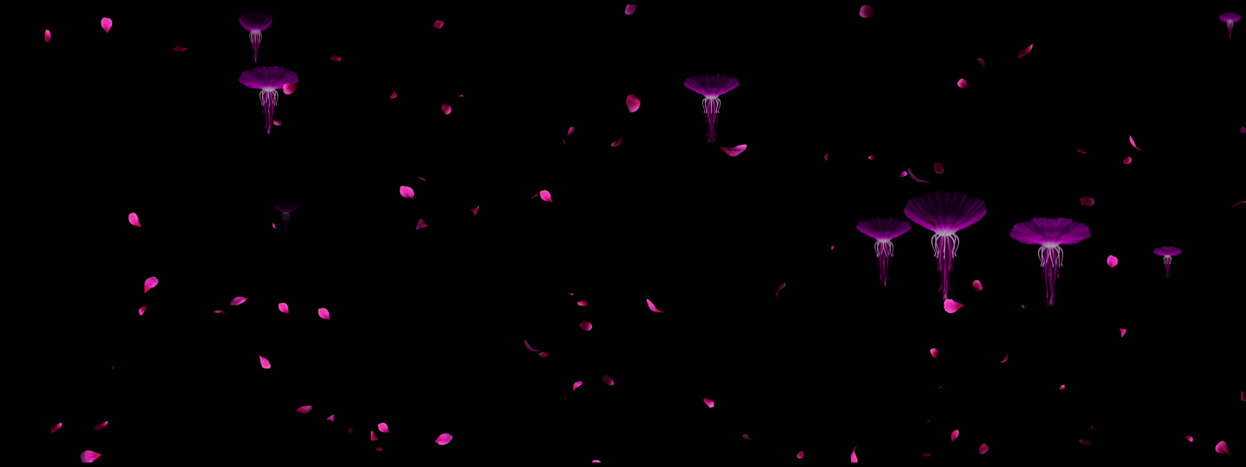 鲜花 玫瑰花 花瓣 飘落 水母 紫色 梦幻 神秘 宴会厅 风景 全息投影素材