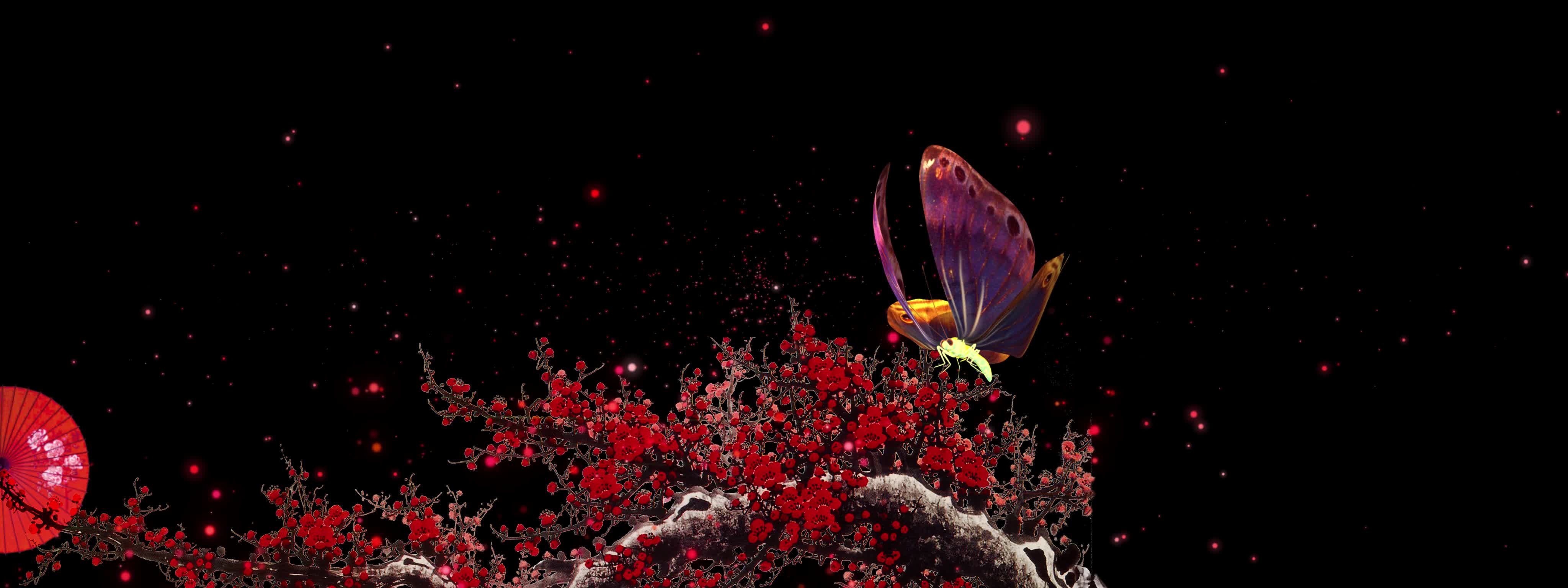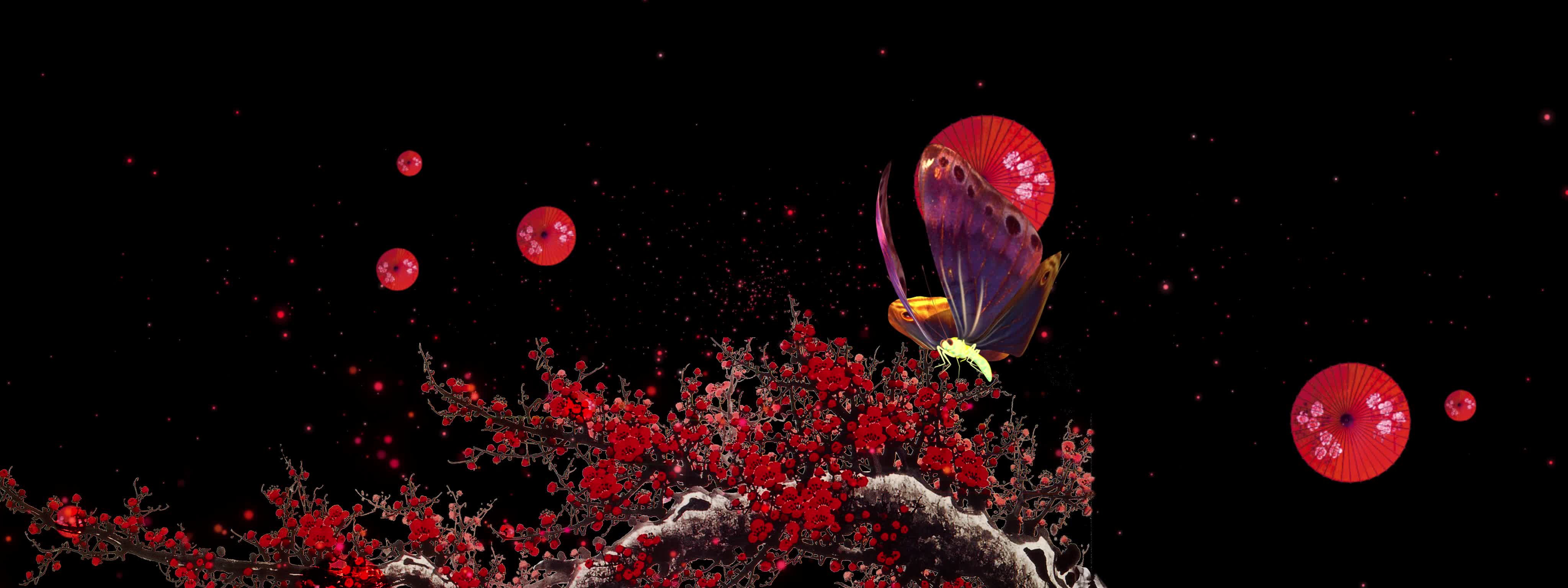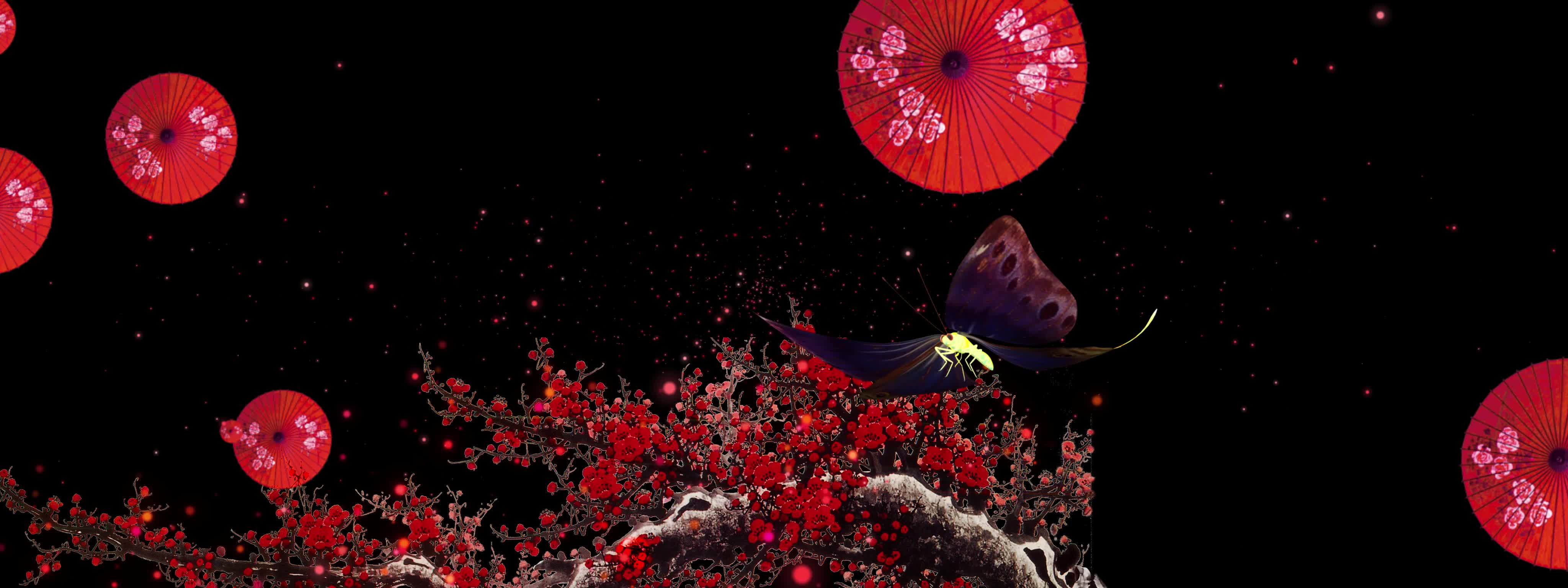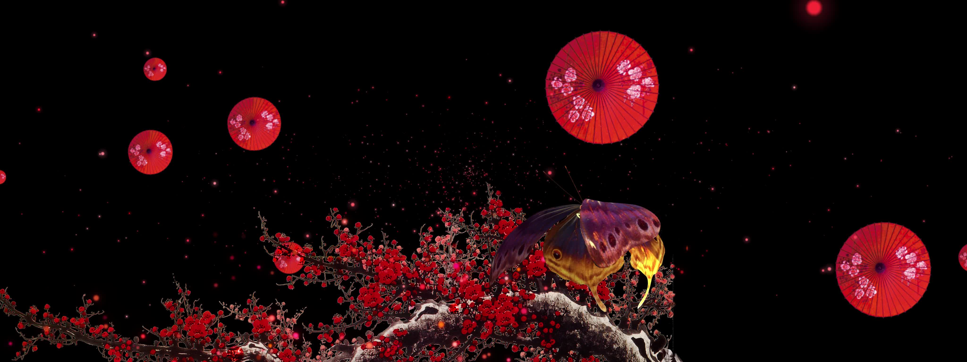 红梅 腊梅 梅花树 油纸伞 梅花 蝴蝶 暖场 全息投影素材 全息动画素材