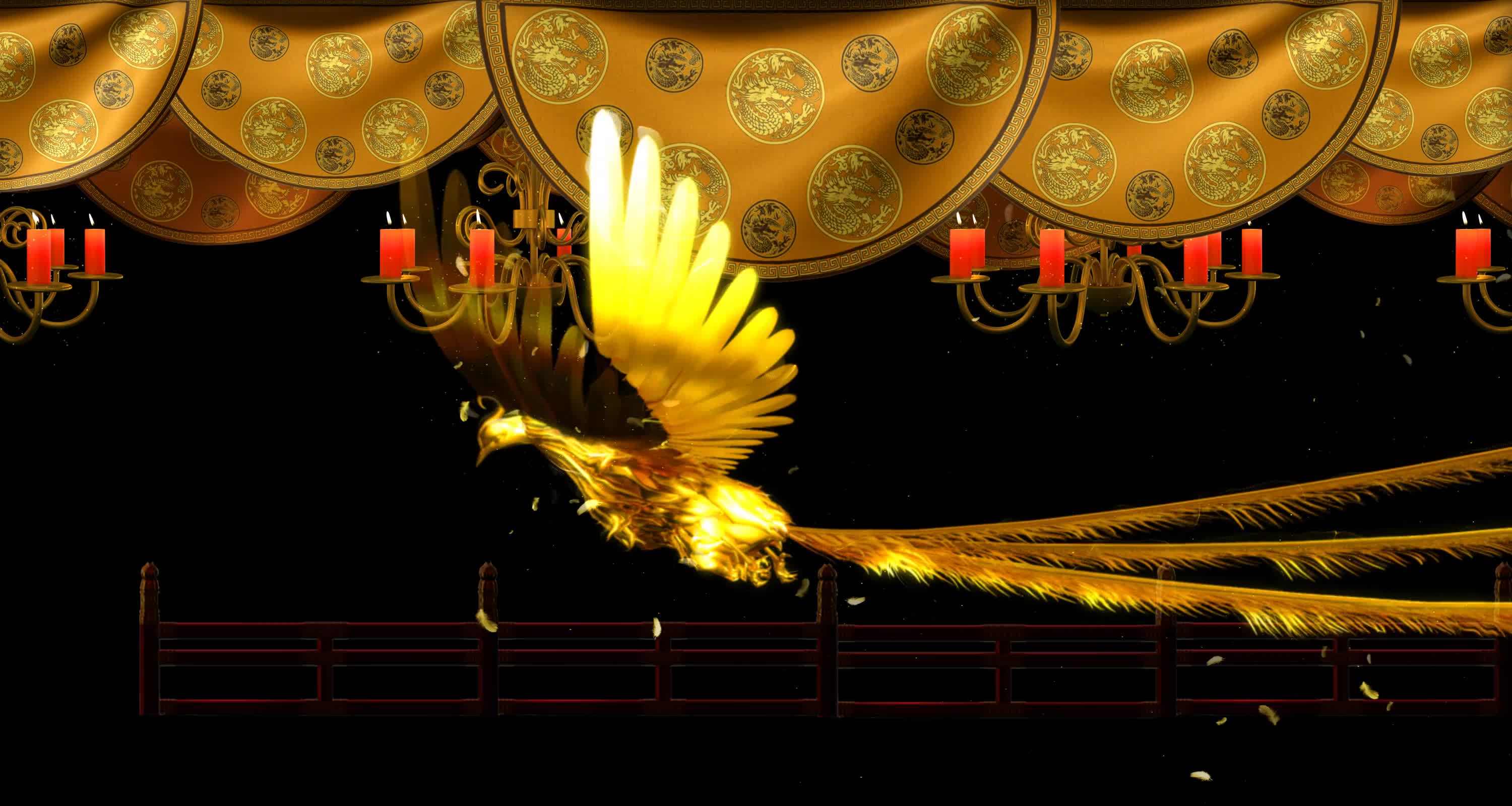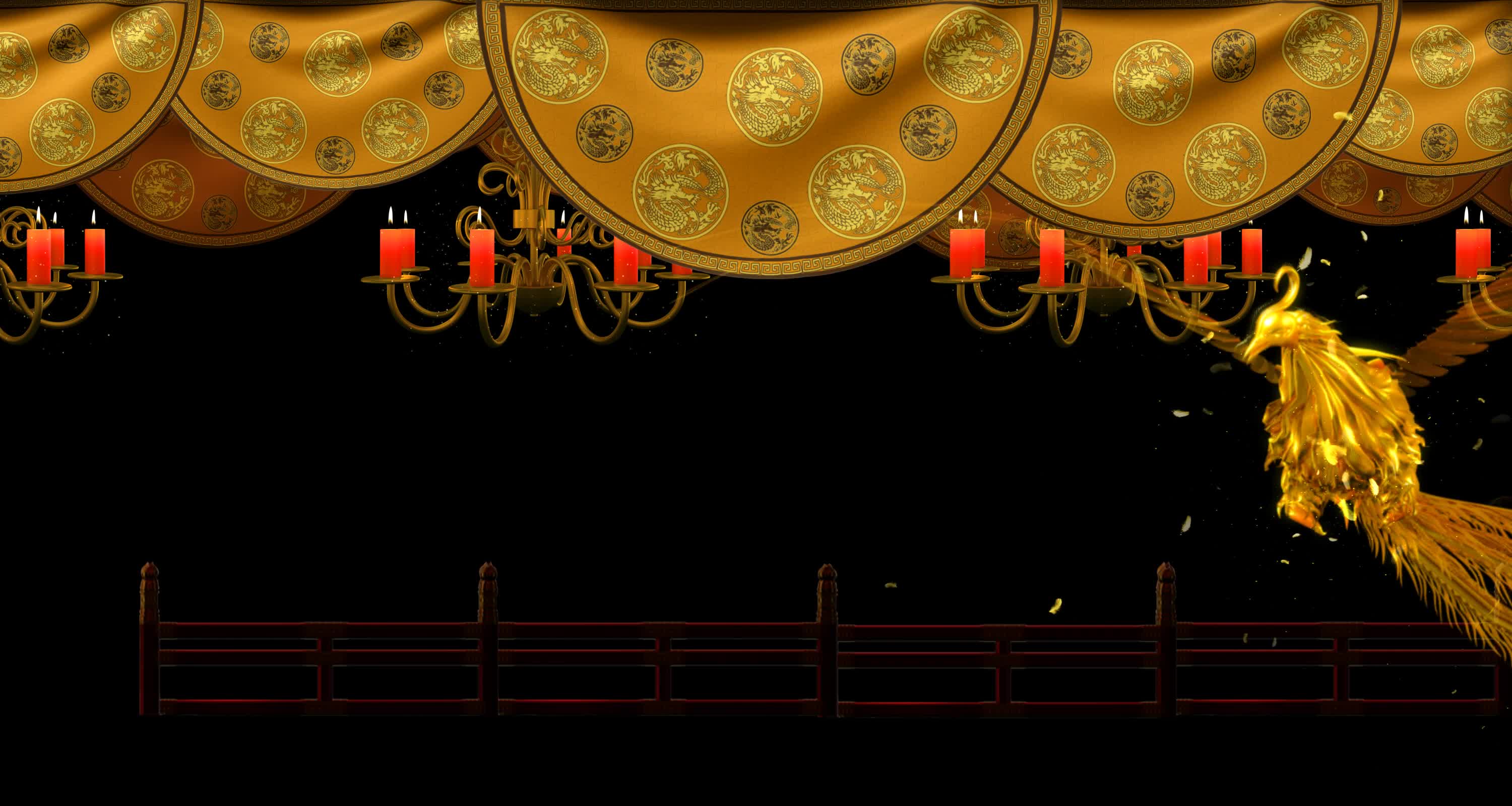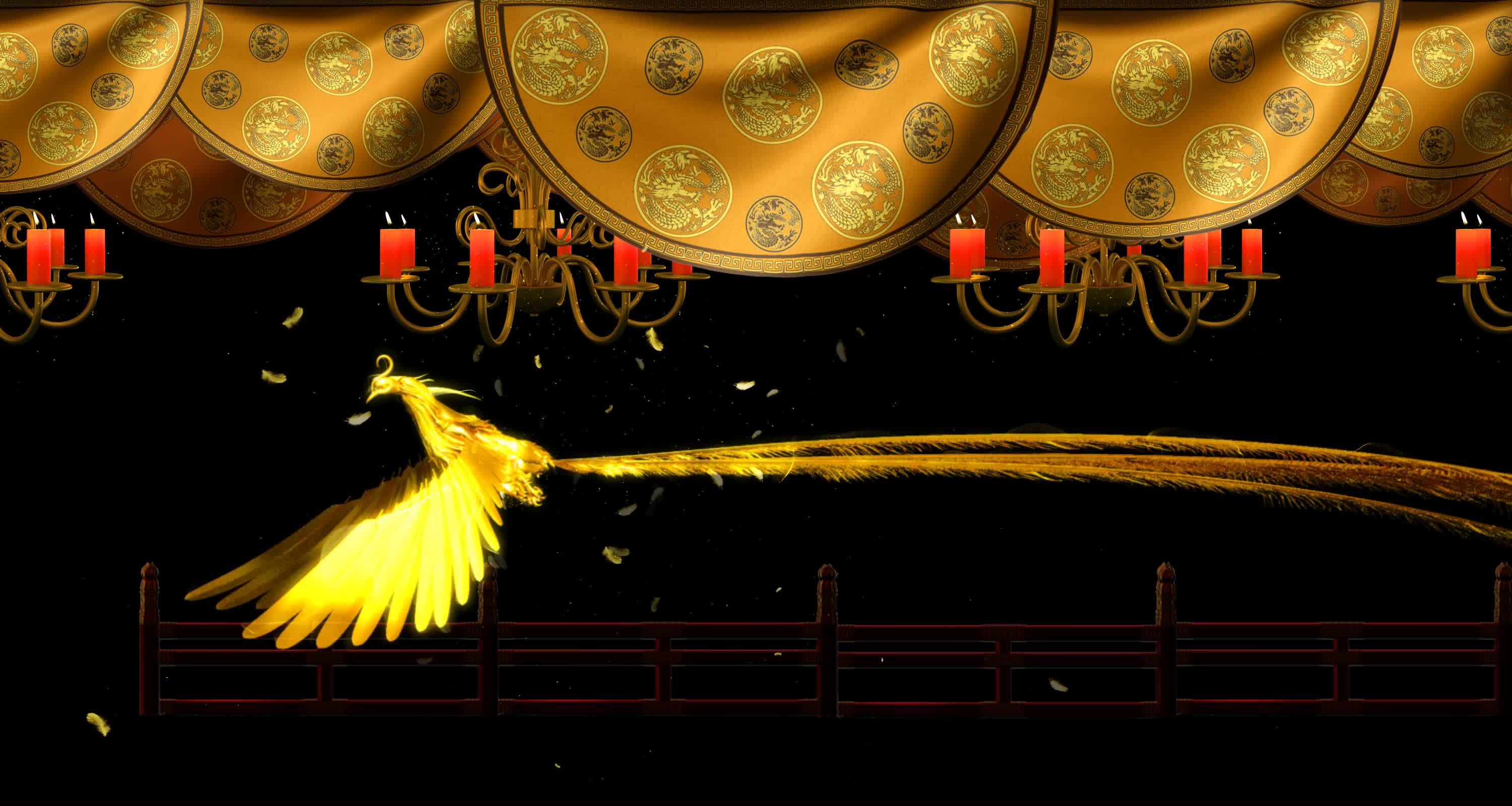 汉唐 金色 龙凤 凤凰 宫殿 宴会厅 中式 复古 中国风婚礼 舞台 背景 素材 中国风 中式婚礼 全息宴会厅 全息婚礼 全息投影素材