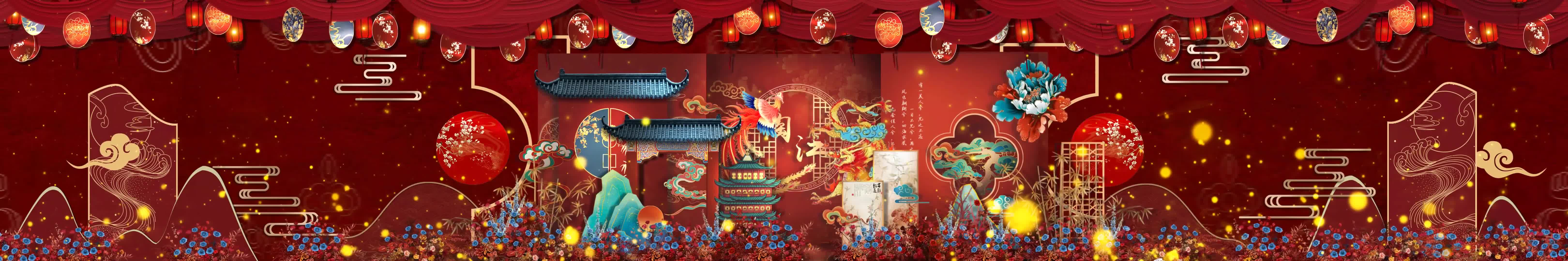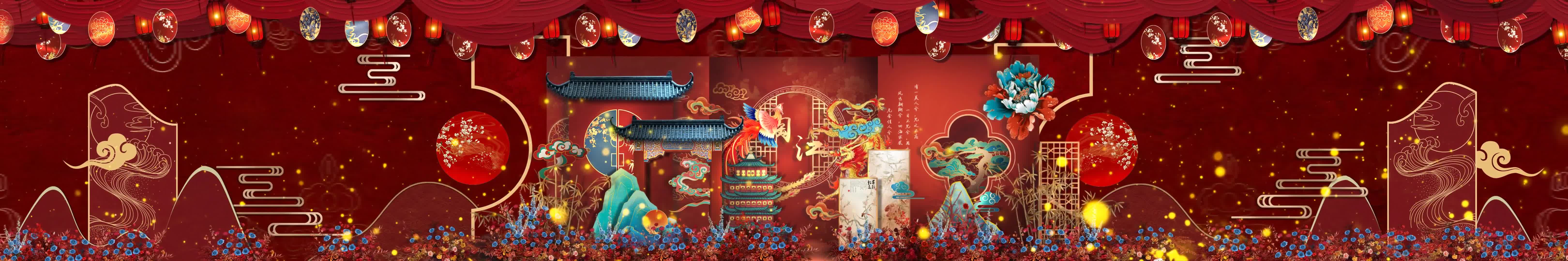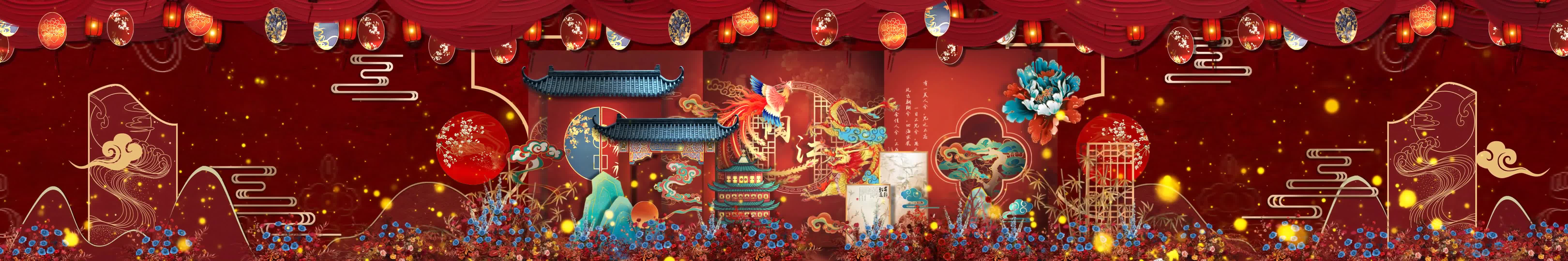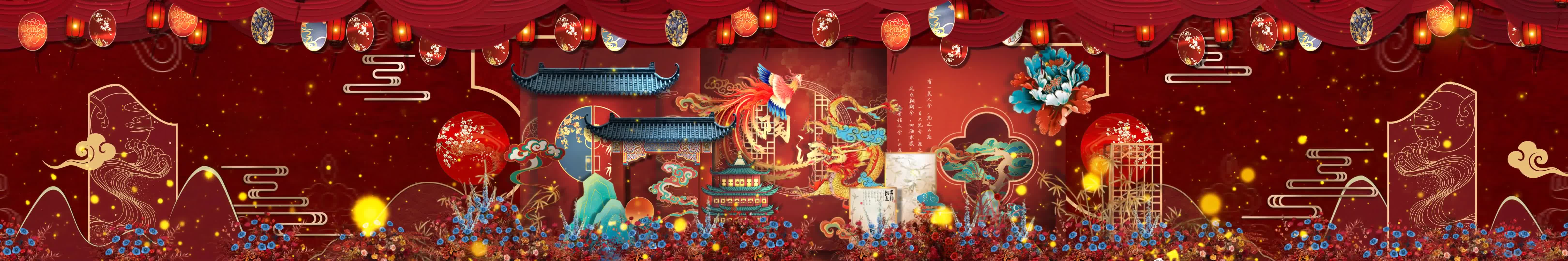 中式婚礼 龙凤 红灯笼 红伞 祥云 屏风 粒子 纱幕素材 婚礼投影素材 婚礼动画