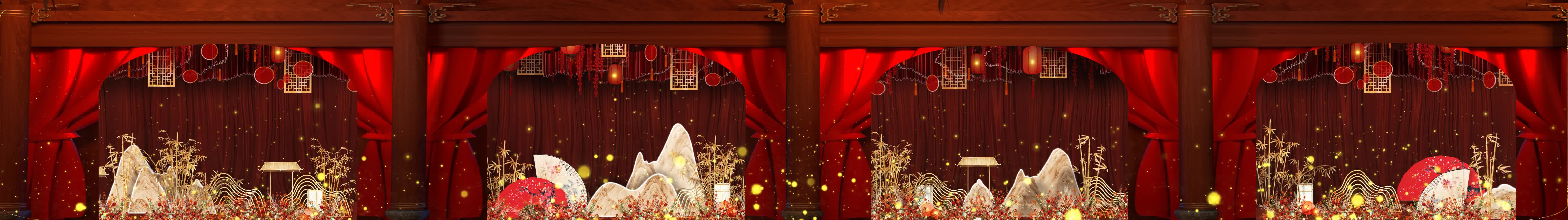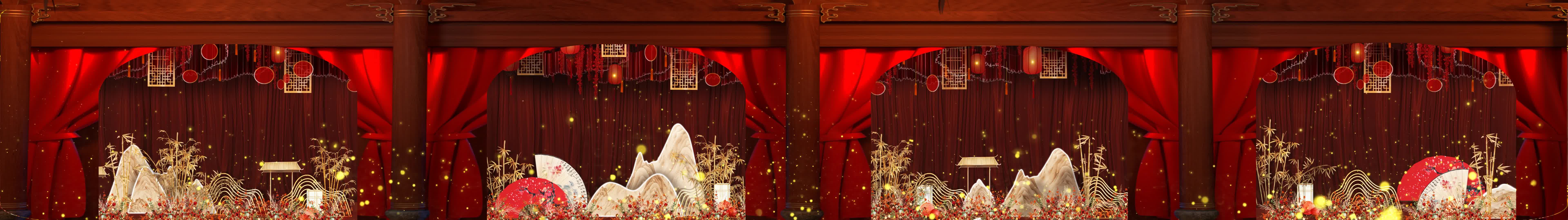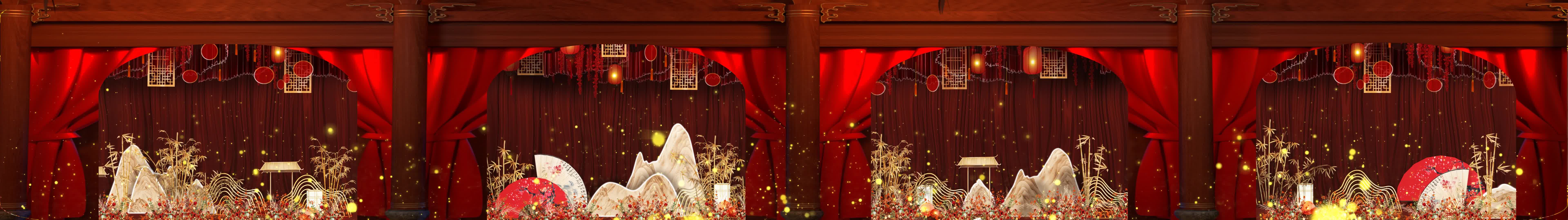 中式婚礼 红灯笼 扇子 假山 竹子 绸布 布帘 粒子 纱幕素材 婚礼投影素材 婚礼动画