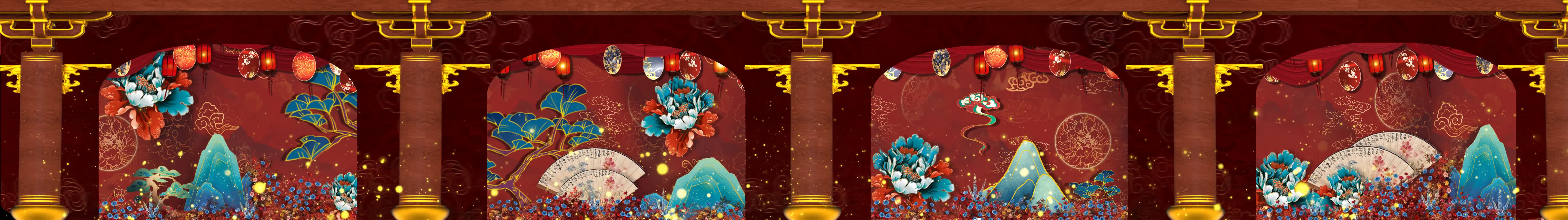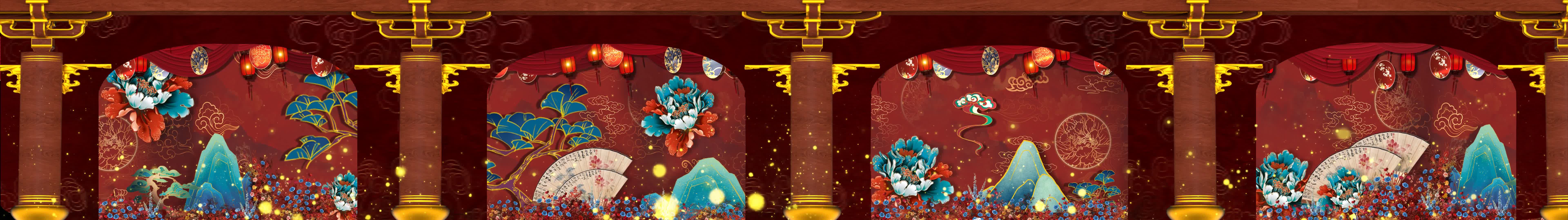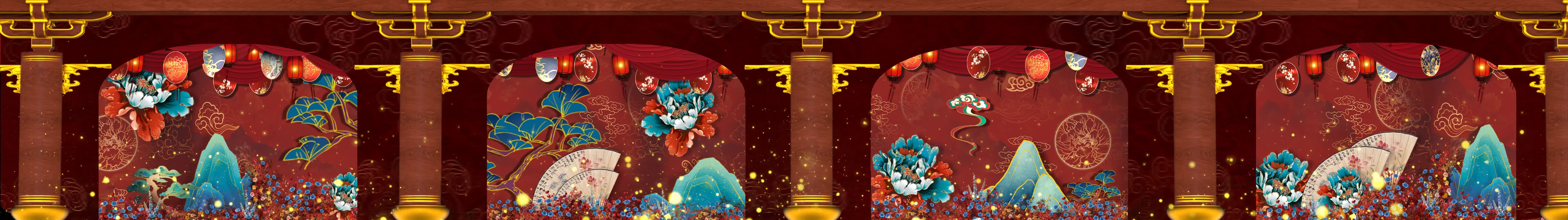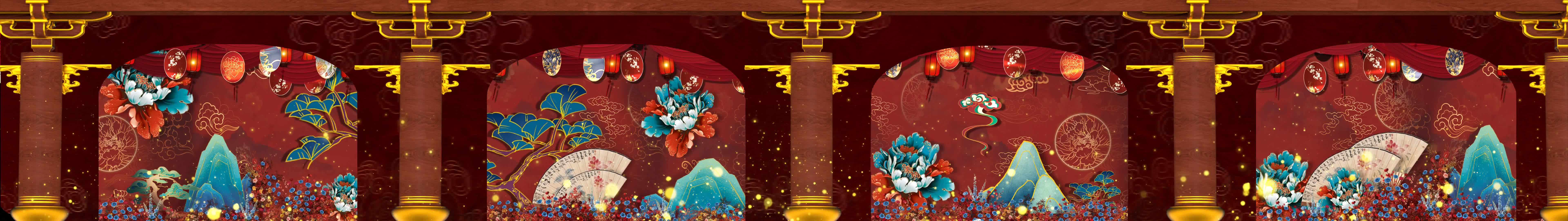 中式婚礼 红灯笼 山 牡丹花 扇子 松树 假山 粒子 婚礼投影素材 婚礼动画
