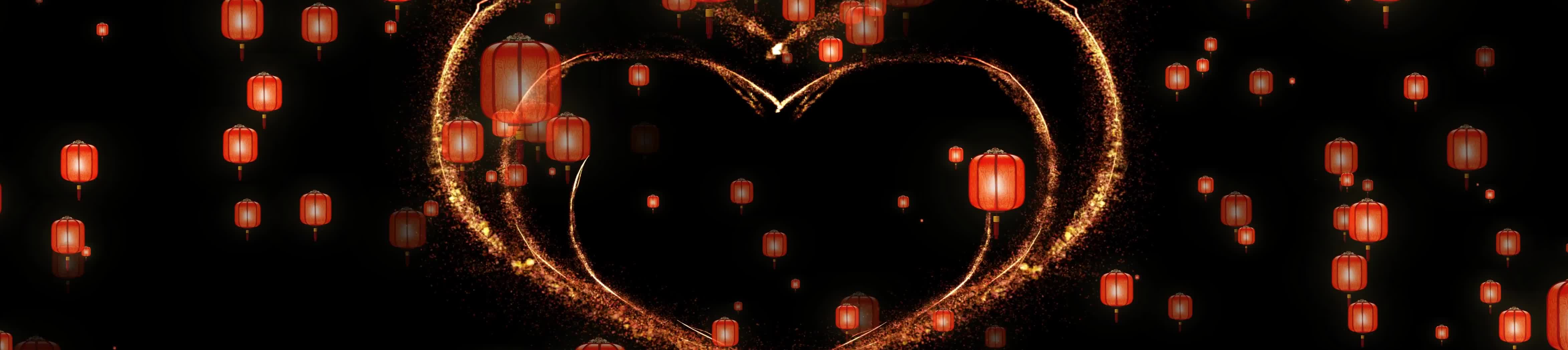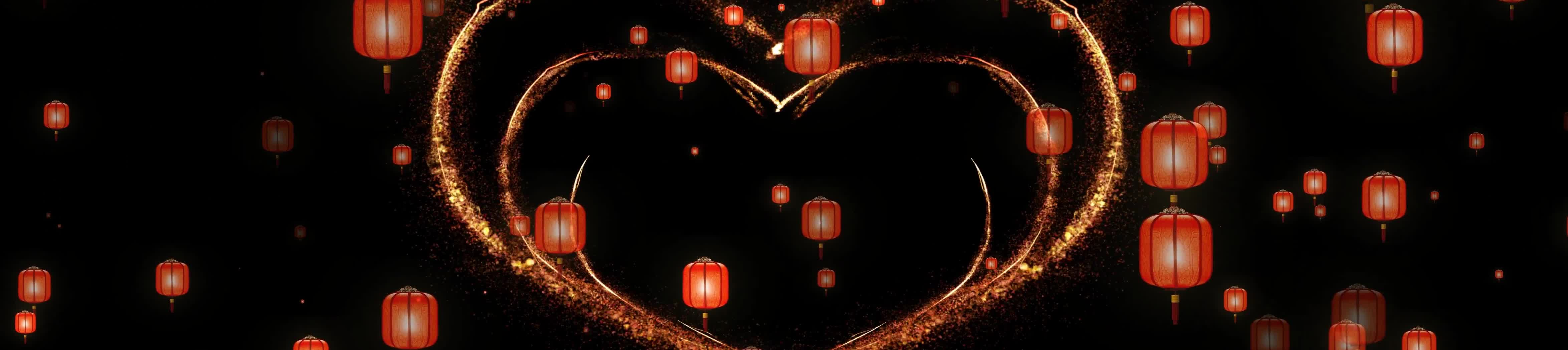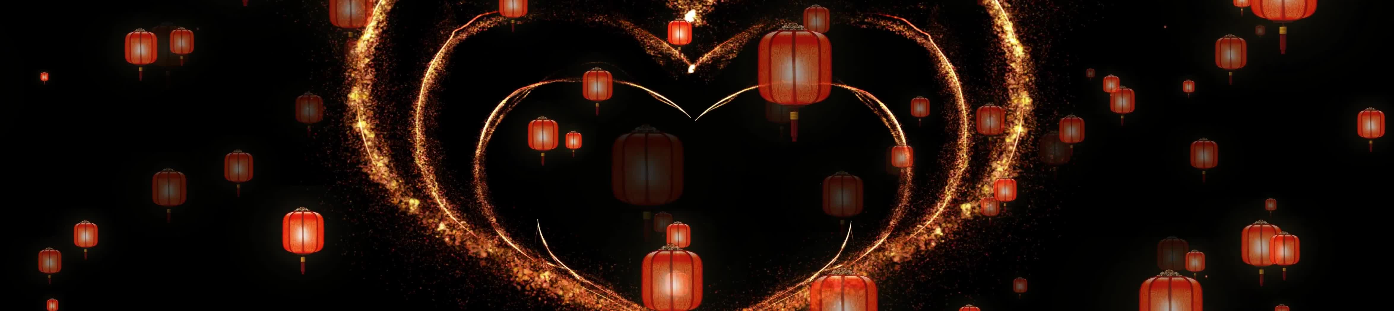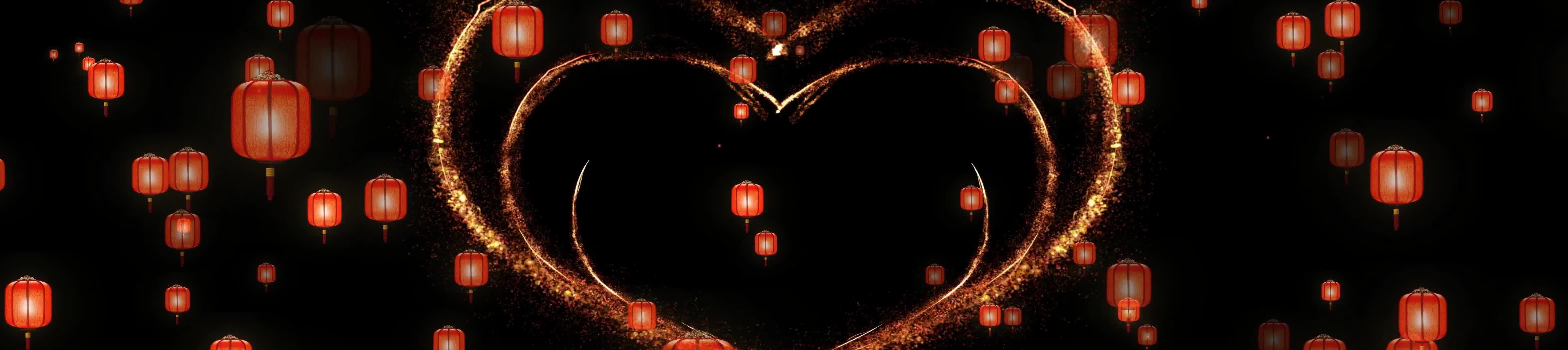 中式婚礼 红灯笼 桃心 纱幕素材 婚礼投影素材 婚礼动画