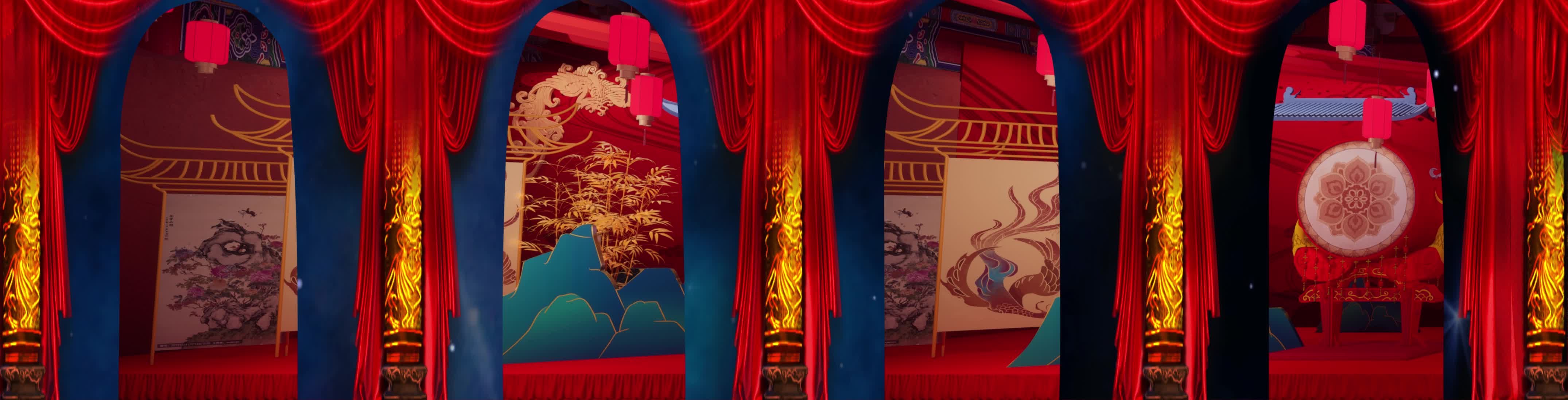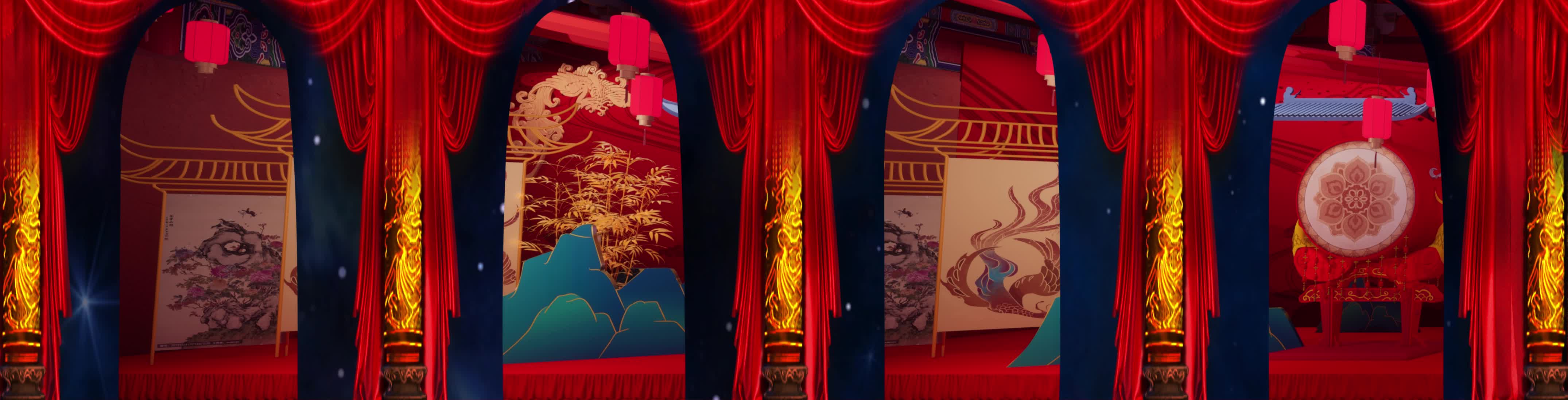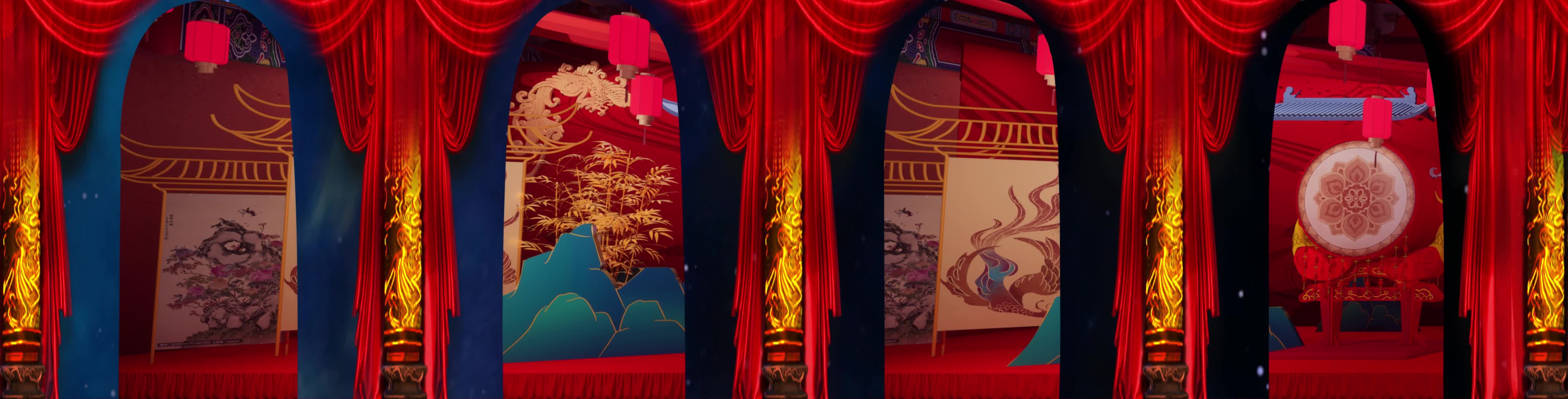 中式婚礼 红灯笼 假山 竹子 红绸布 屏风 鼓 柱子 婚礼投影素材 婚礼动画