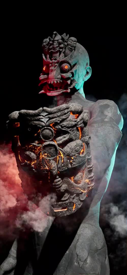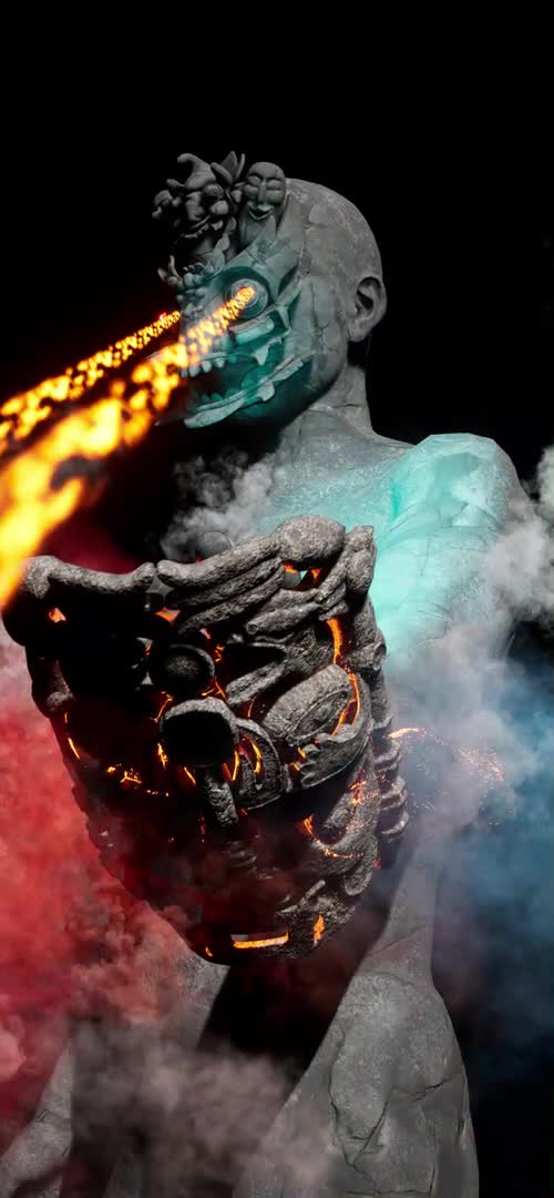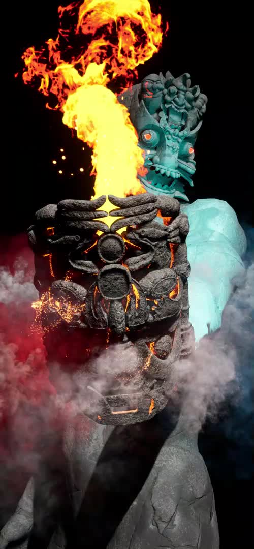 面具 傩面 巨人 石头人 火 喷火 烟雾 科幻 魔幻 动画素材
