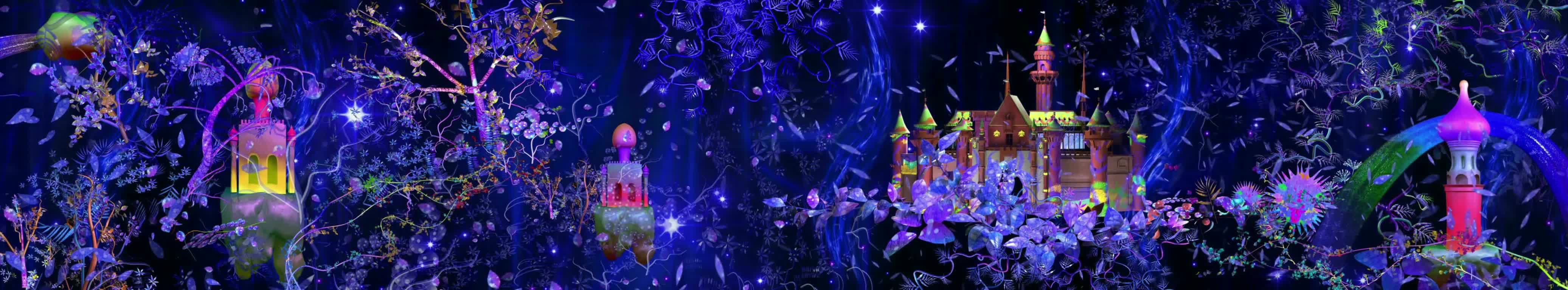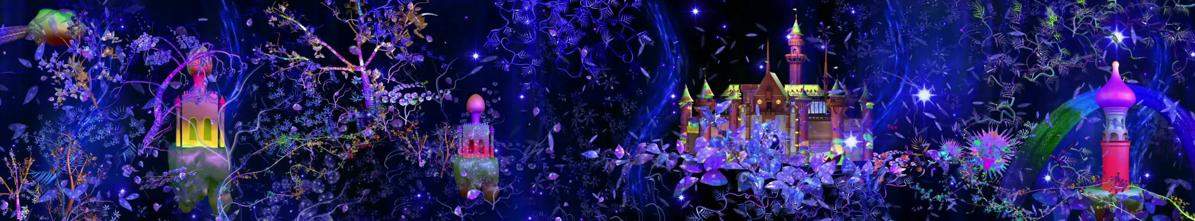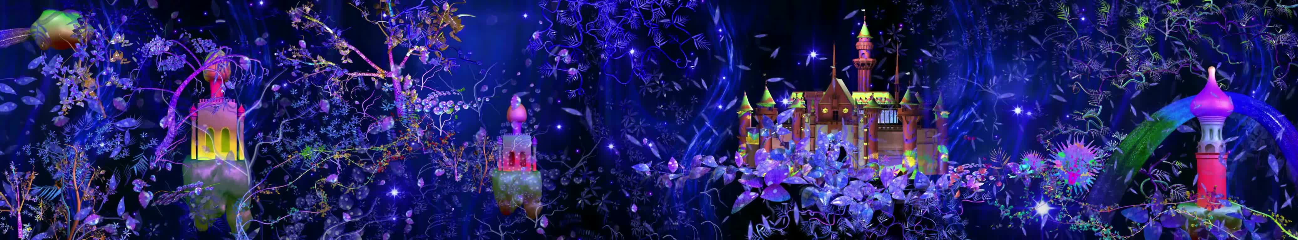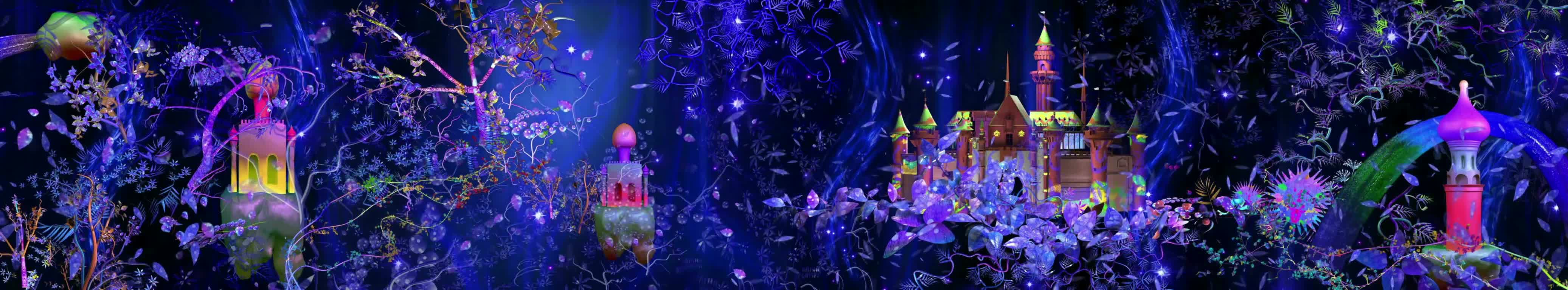 餐厅,全息餐厅,餐厅投影,墙面投影,梦幻彩虹,丛林漫游,紫色,城堡彩虹,城堡,梦幻乐园,童真,紫色花,树藤,全息投影视频,全息素材