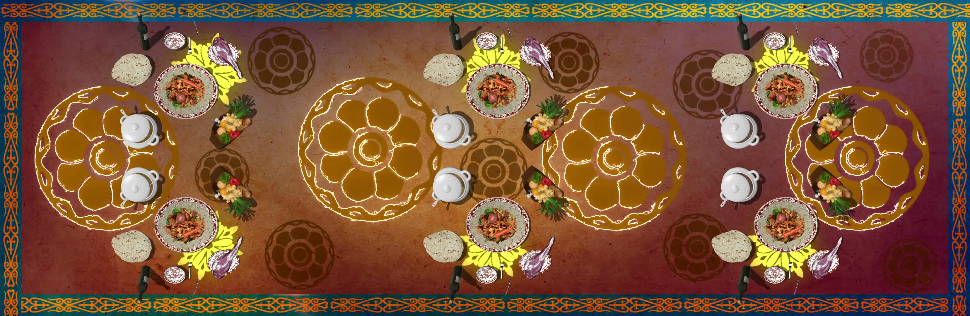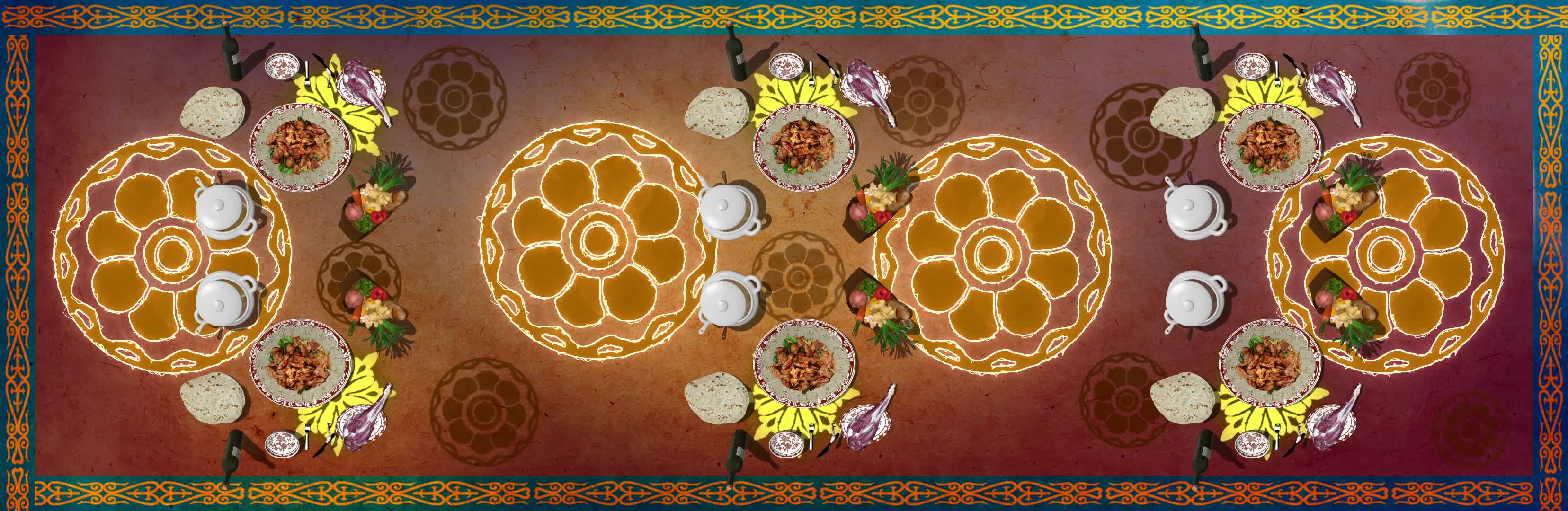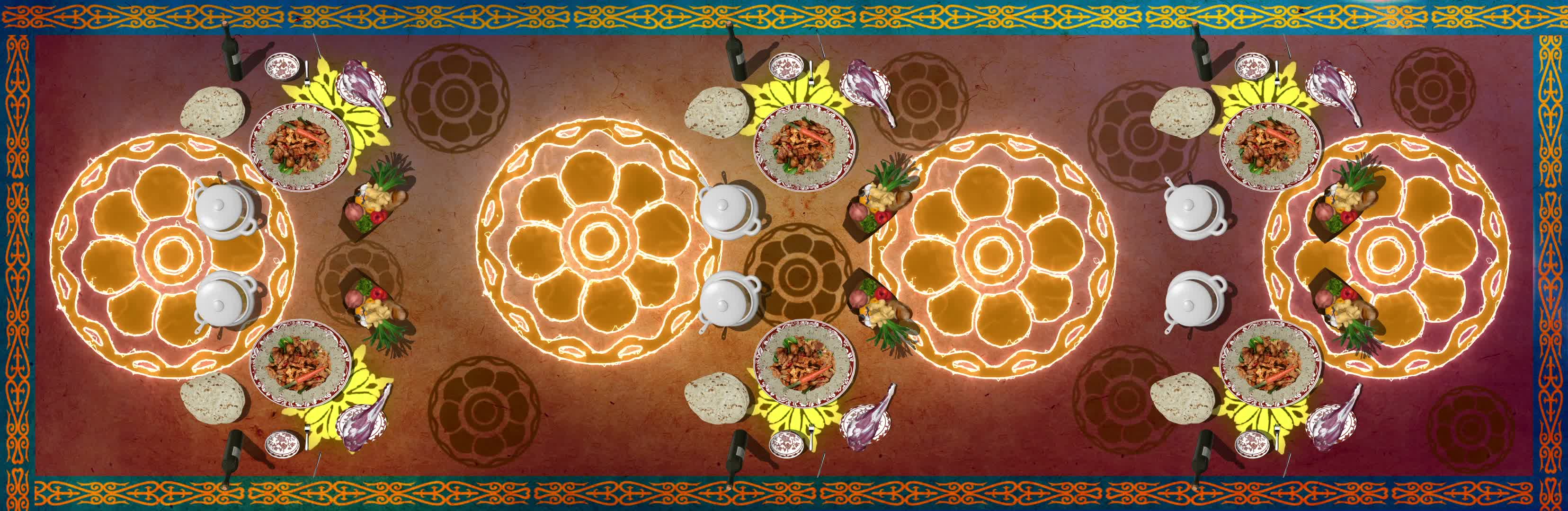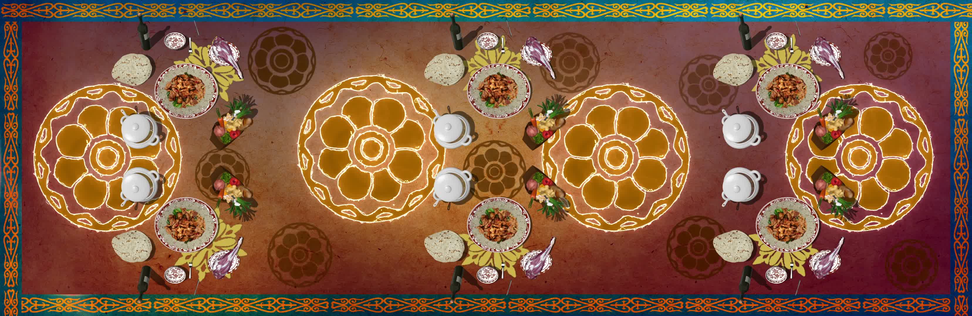 餐厅,全息餐厅,餐厅投影,餐桌投影,金黄色,城堡,粒子,欧式风格,全息投影视频,全息素材,餐盘