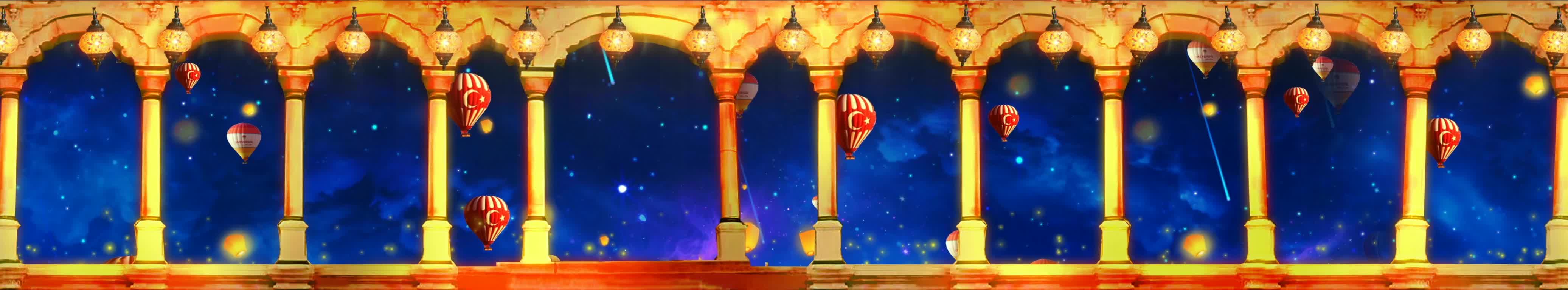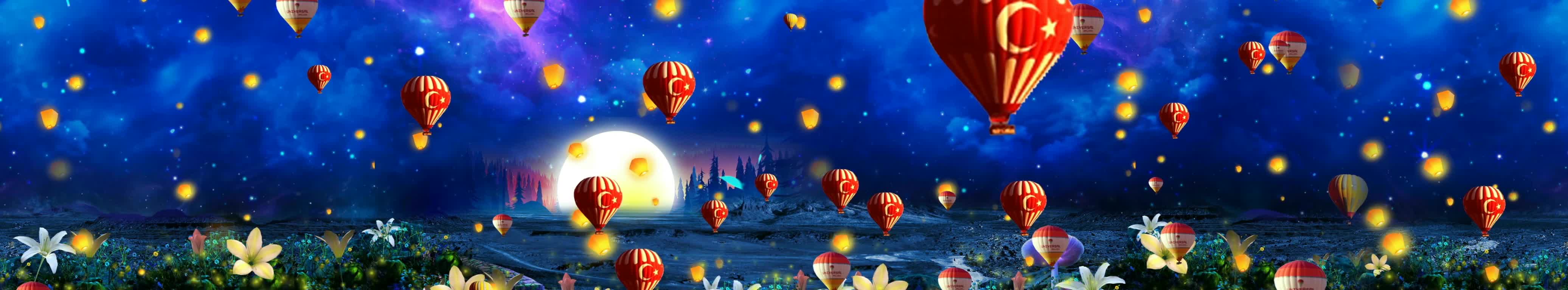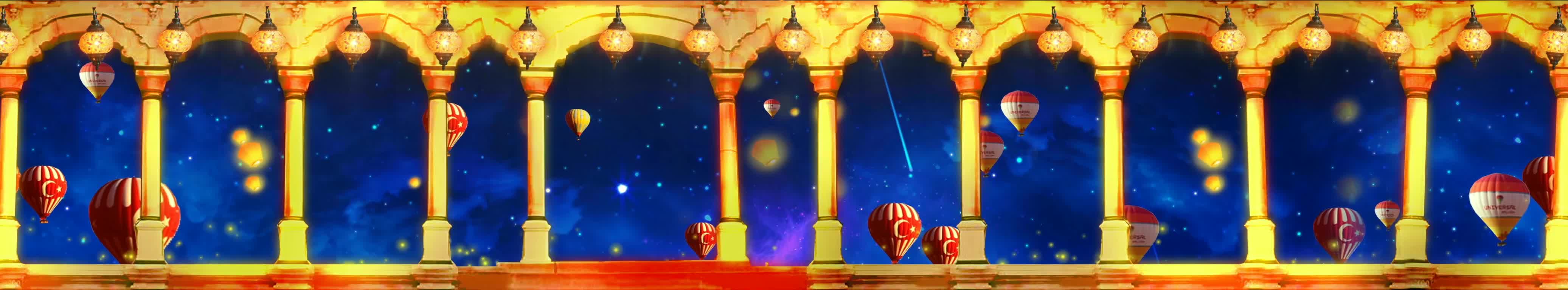 全息餐厅素材,热气球,紫蓝色星空,流星,全息投影素材,裸眼3D投影,粒子,花园,金拱门,花草,粒子,月亮