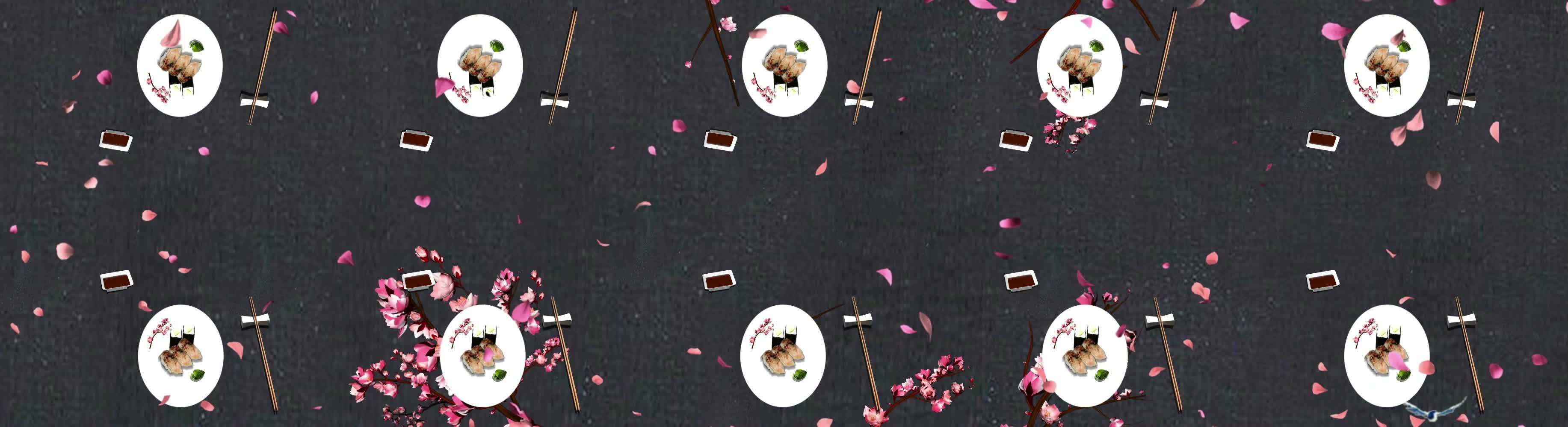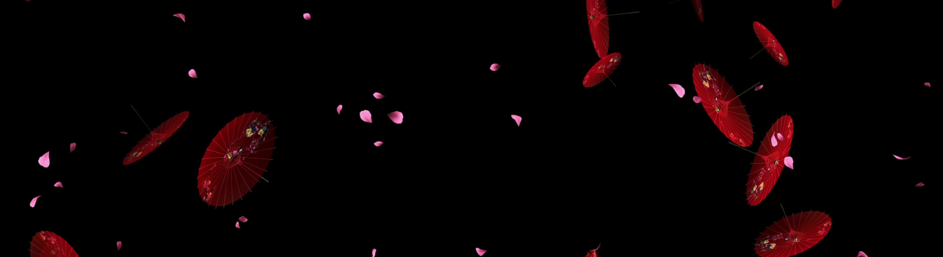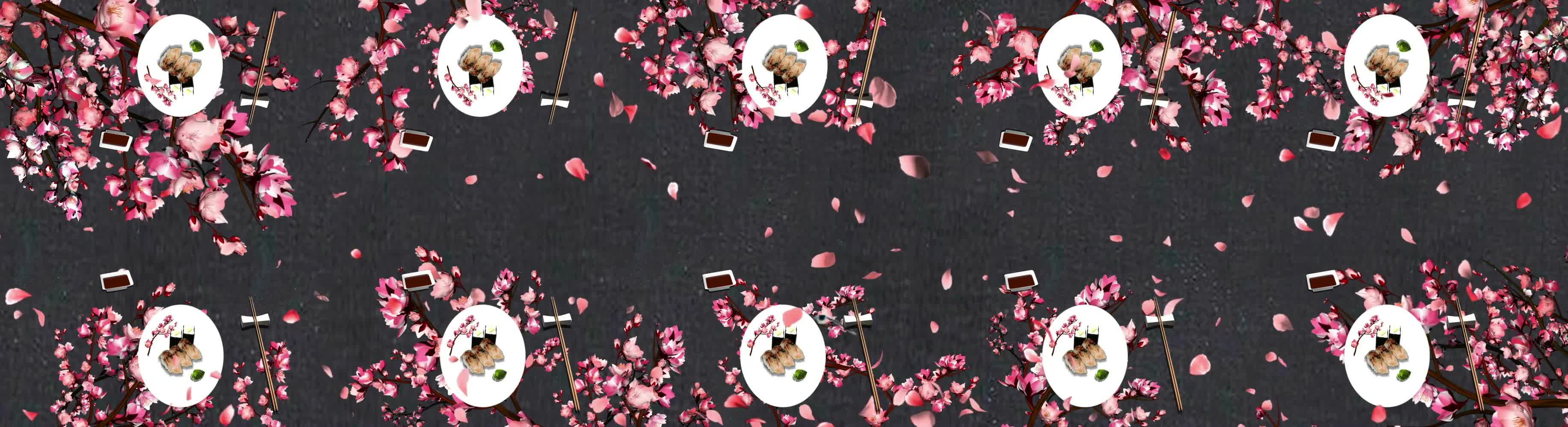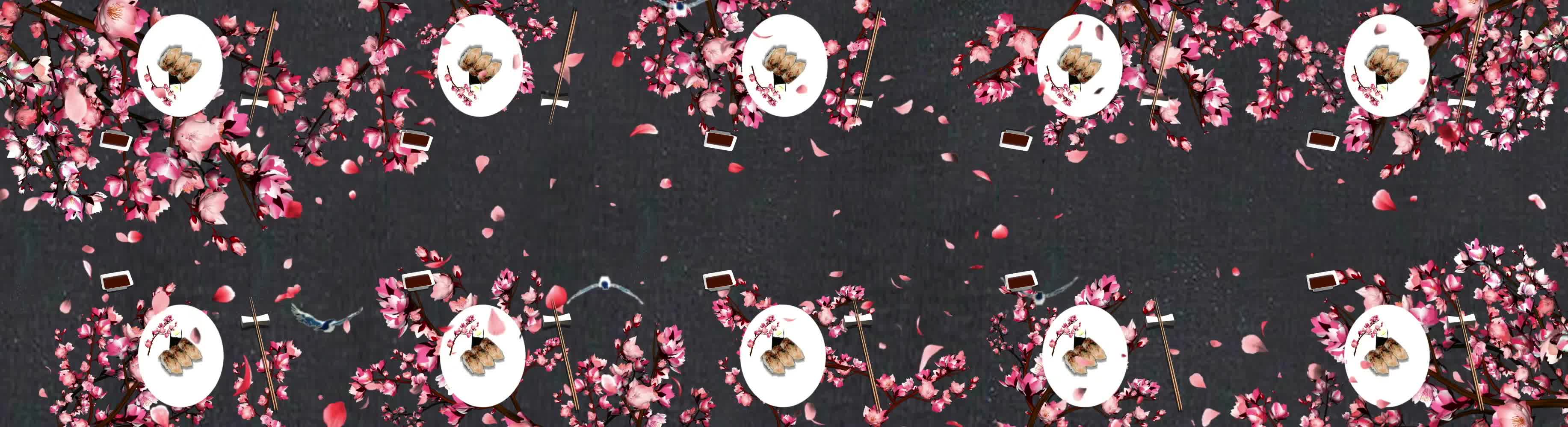 全息投影素材,餐桌,餐桌素材,全息餐厅,裸眼3D投影,红色,雨伞,花瓣,桃花,樱花,日本,寿司