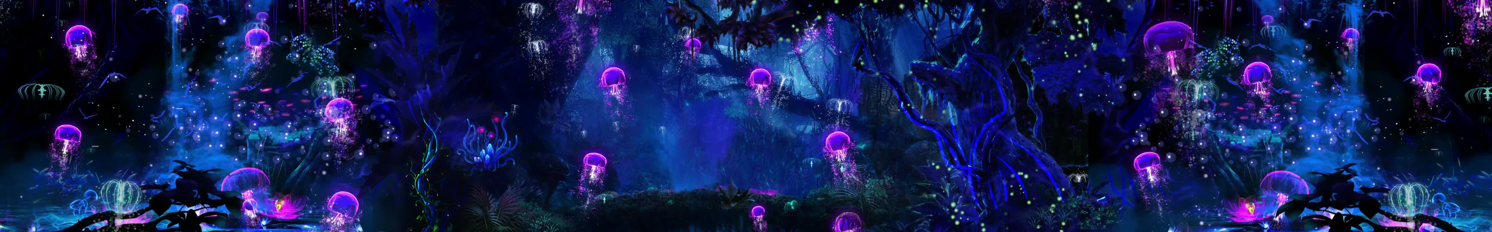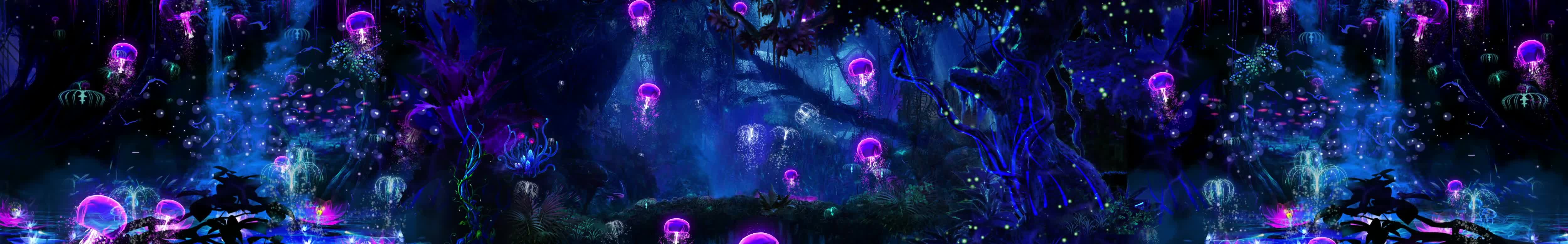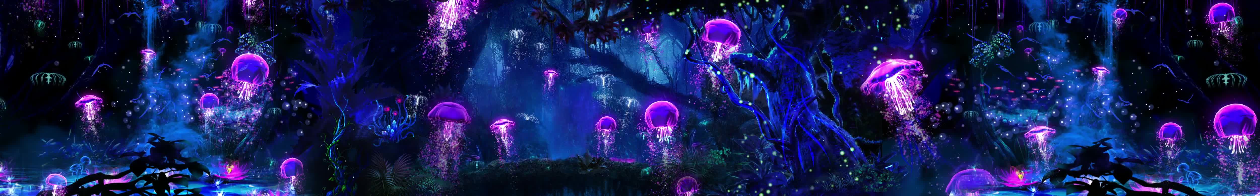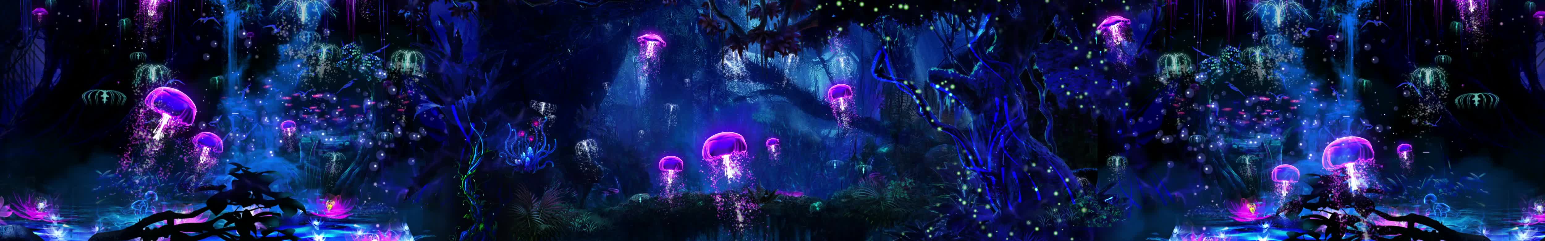 全息投影素材,裸眼3D素材,全息素材,水母,森林,粒子,萤火虫,梦幻,丛林,海底世界,蓝色,紫色,神秘,宴会厅
