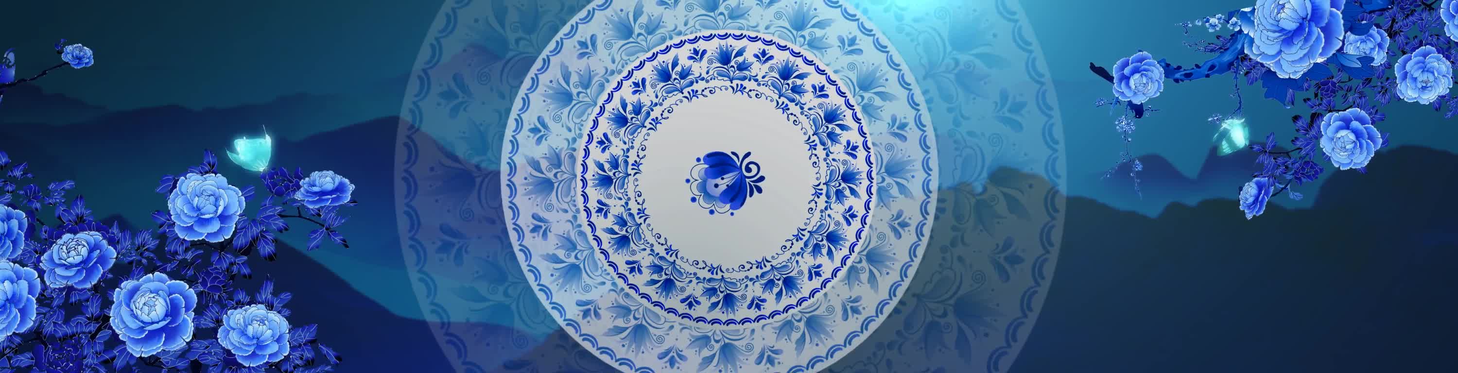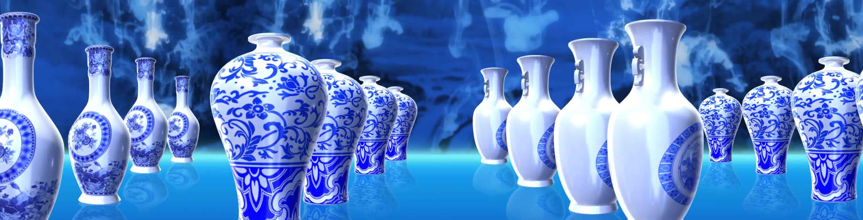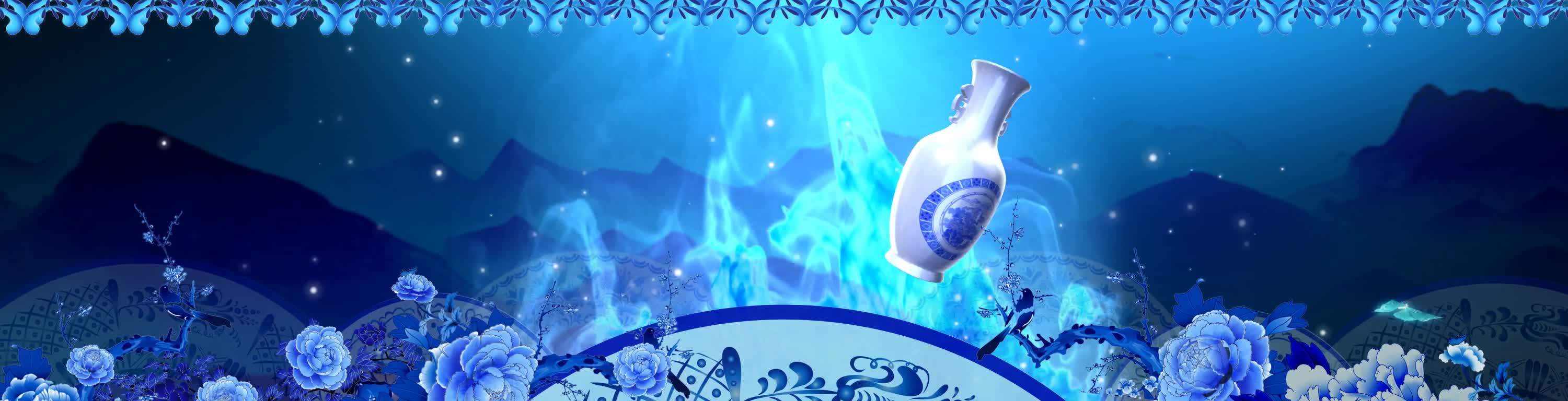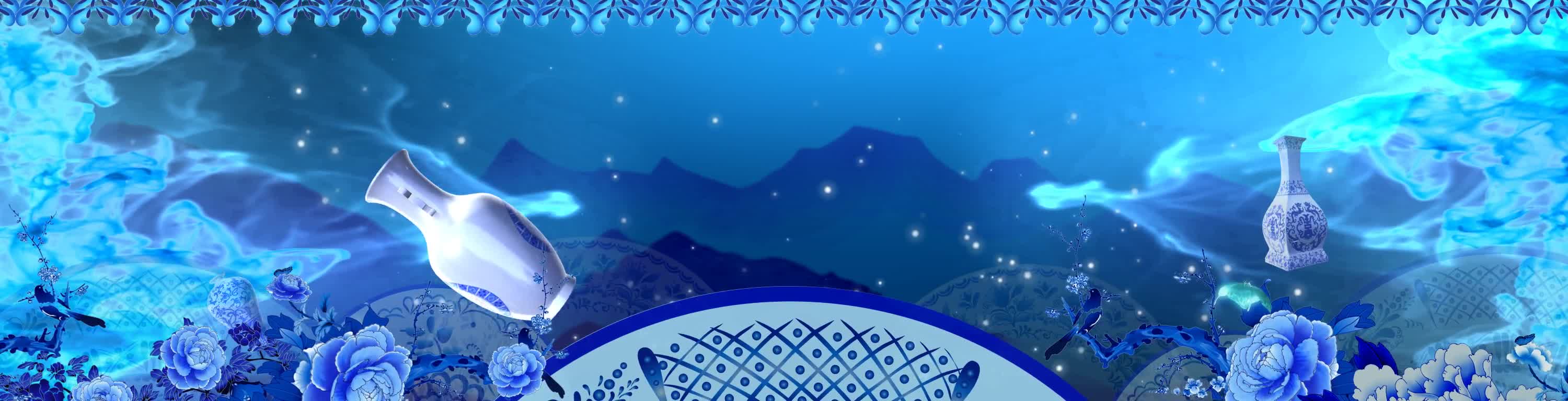 青花瓷,水墨,瓷器,蓝色,蓝色花,花纹,中式,宴会厅,全息