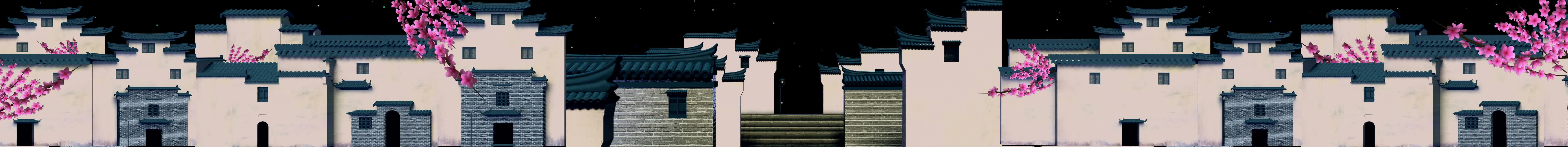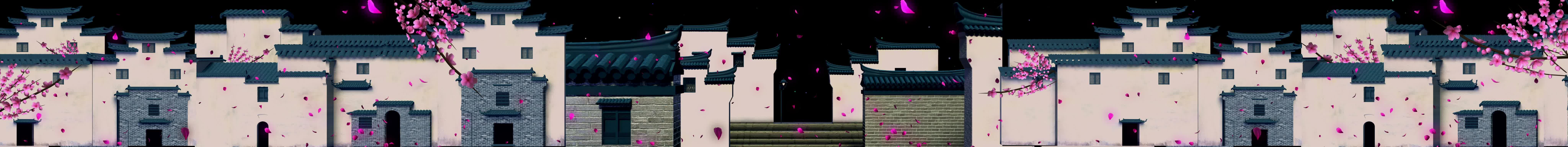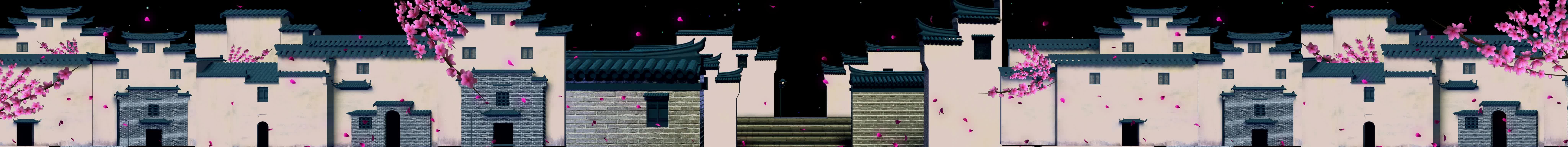 中式宴会厅,烟雨江南景区,安徽建筑,白墙,桃花,展厅,开场秀舞美,全息投影素材视频
