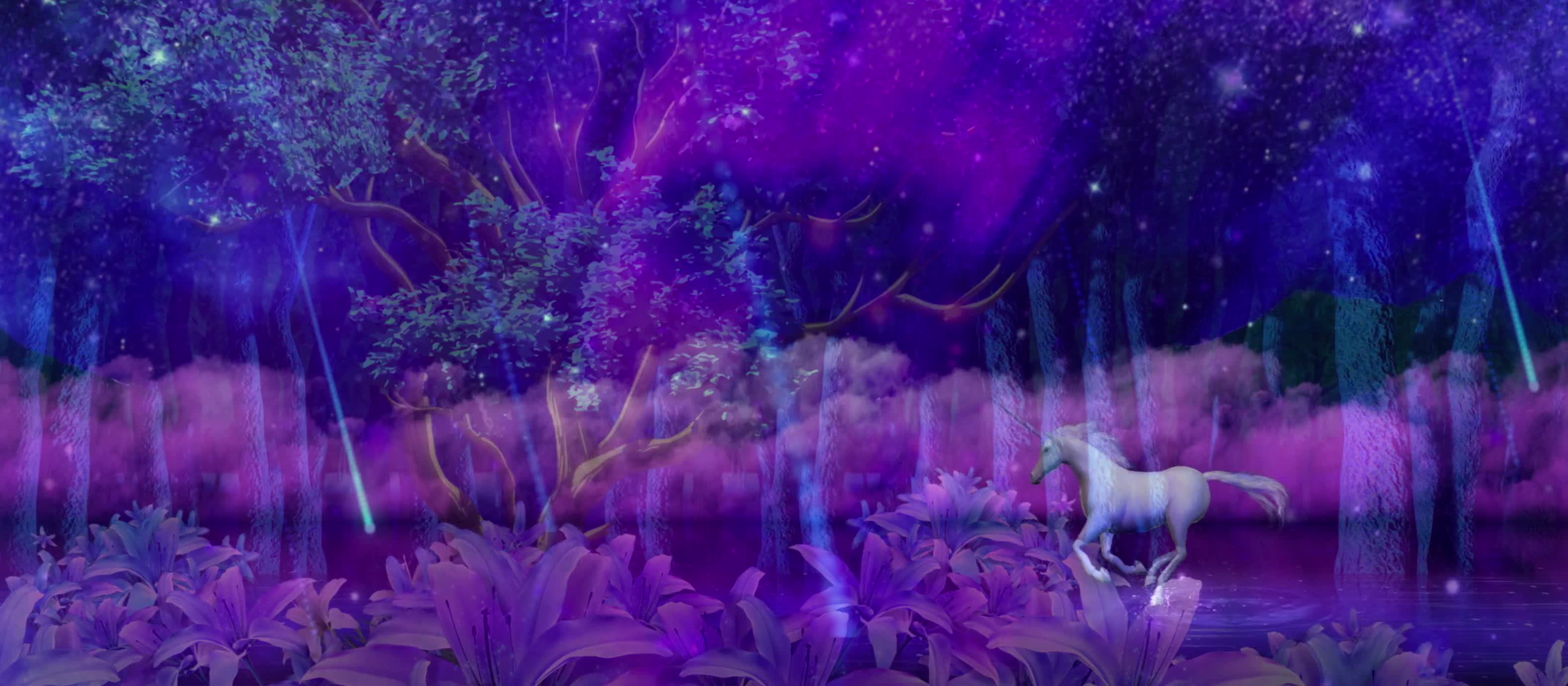 开场秀,粒子,星辰,丛林,独角兽,流星,震撼开场,松鼠,蝴蝶,花丛,紫色花,蒲公英,星空,梦幻,绚丽,浪漫,宴会厅,全息投影素材,开场秀投影素材
