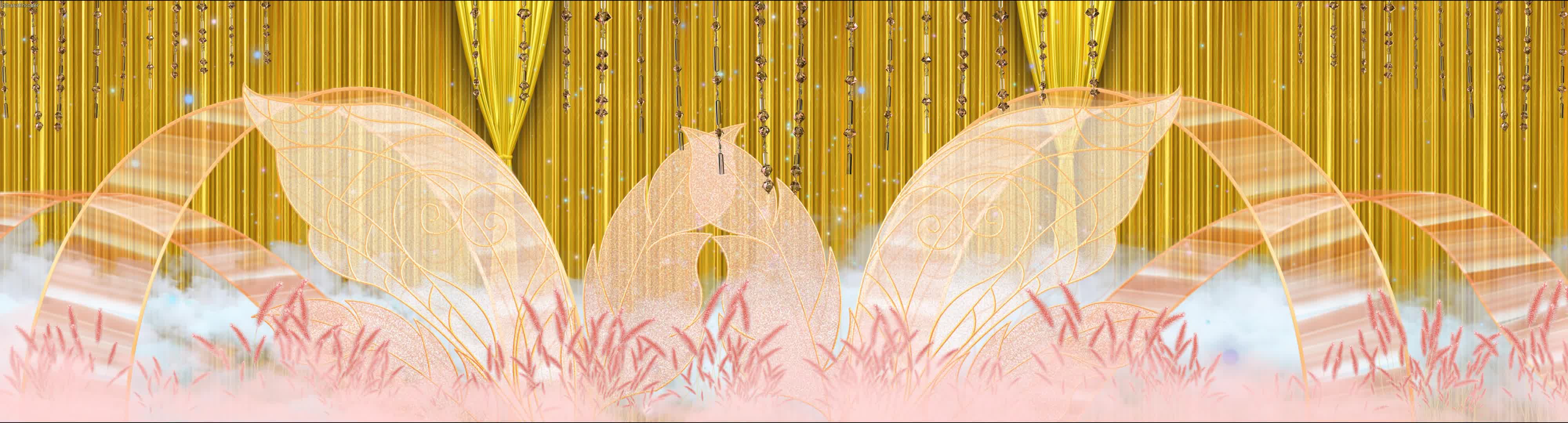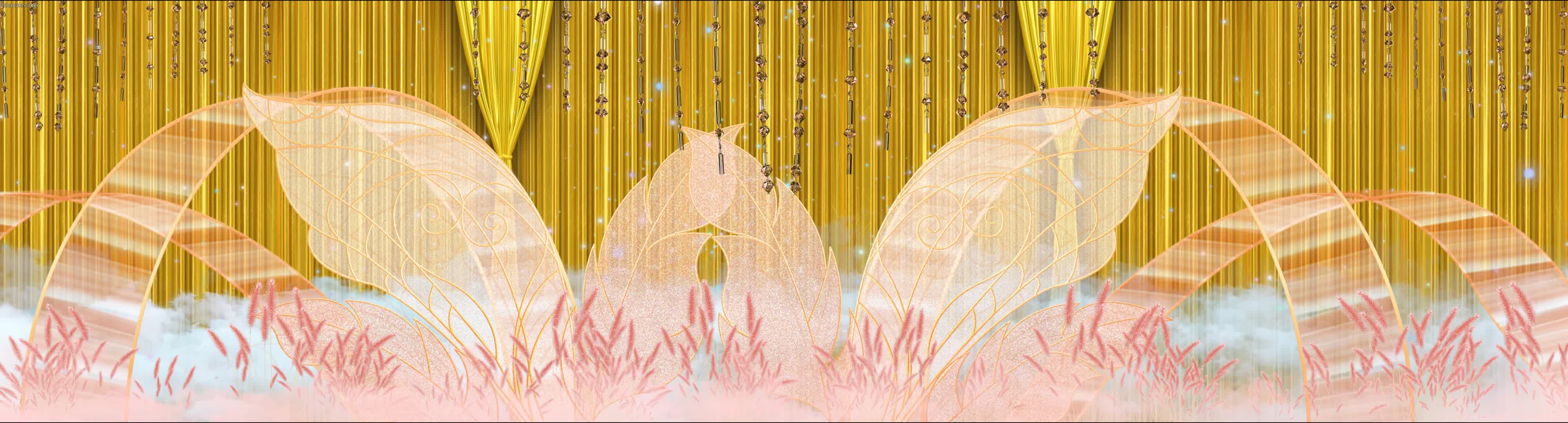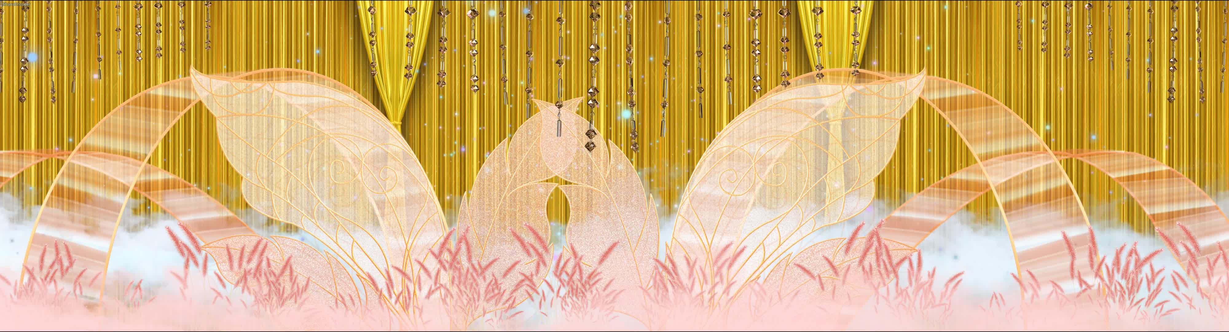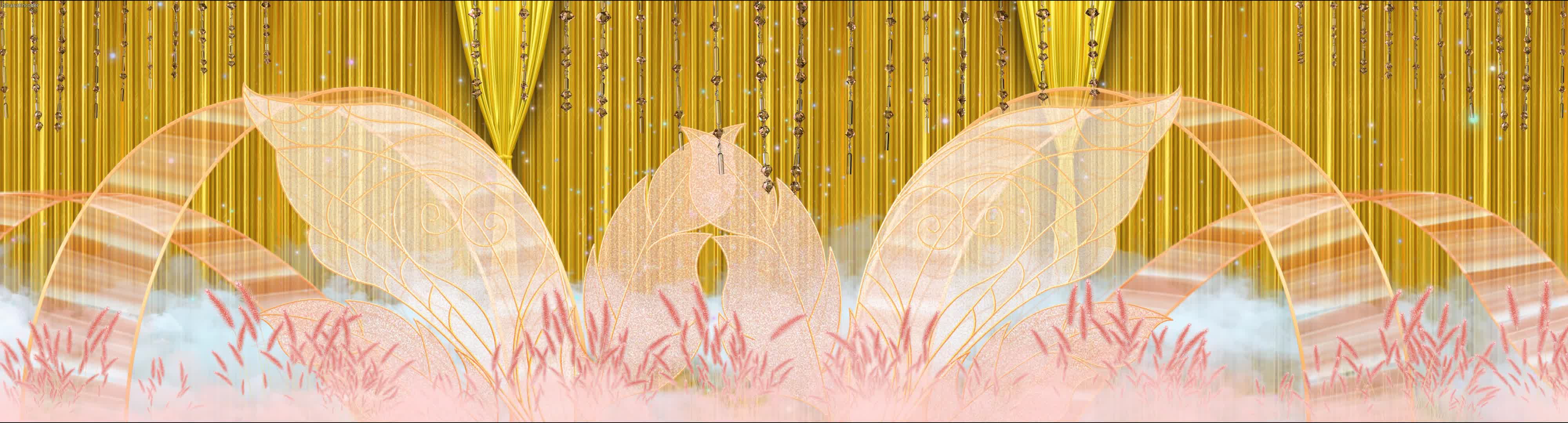 清新 唯美 香槟色 芦苇 鲜花 粉色 宴会厅 婚礼 风格